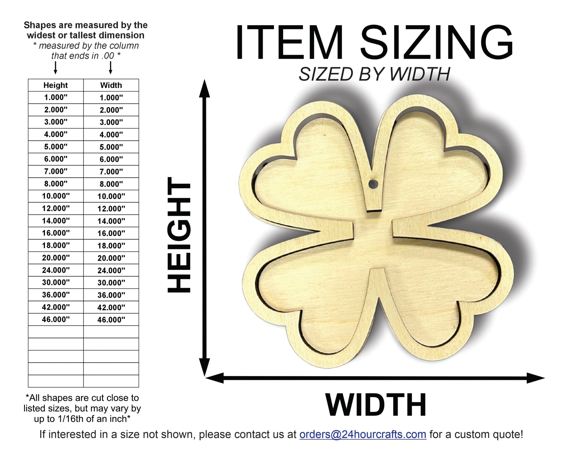 Unfinished Wood 2 Layer Four Leaf Clover Shadowbox Shape | DIY Craft Cutout | up to 46" DIY