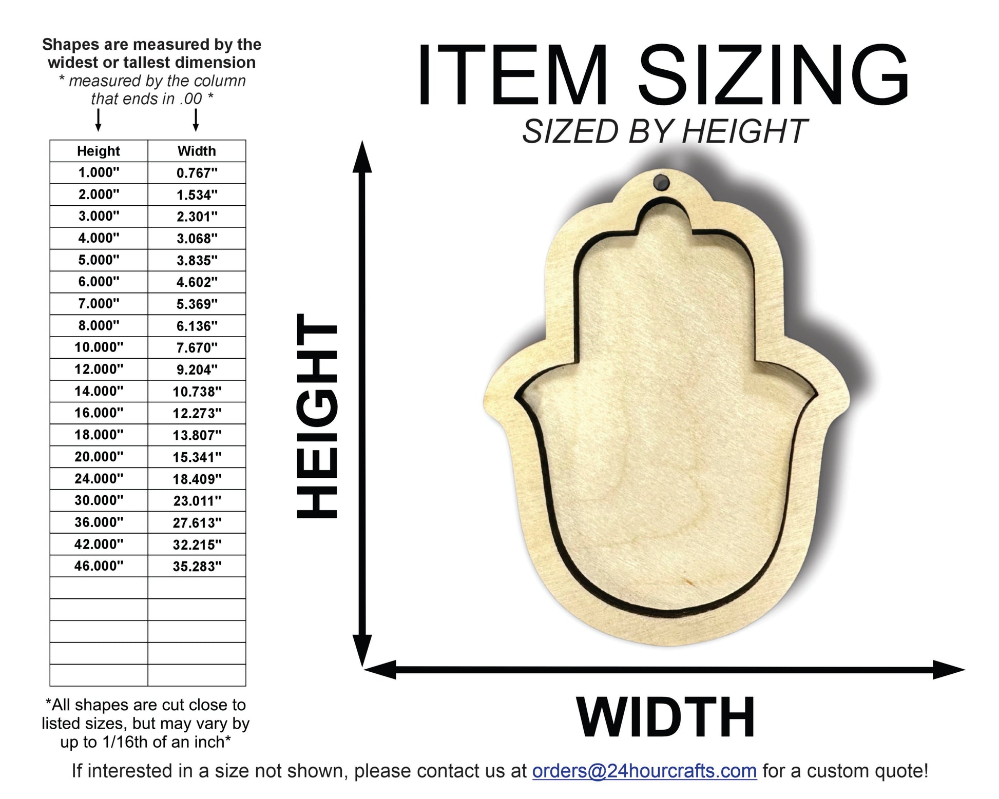 Unfinished Wood 2 Layer Hamsa Shadowbox Shape | DIY Craft Cutout | up to 46" DIY