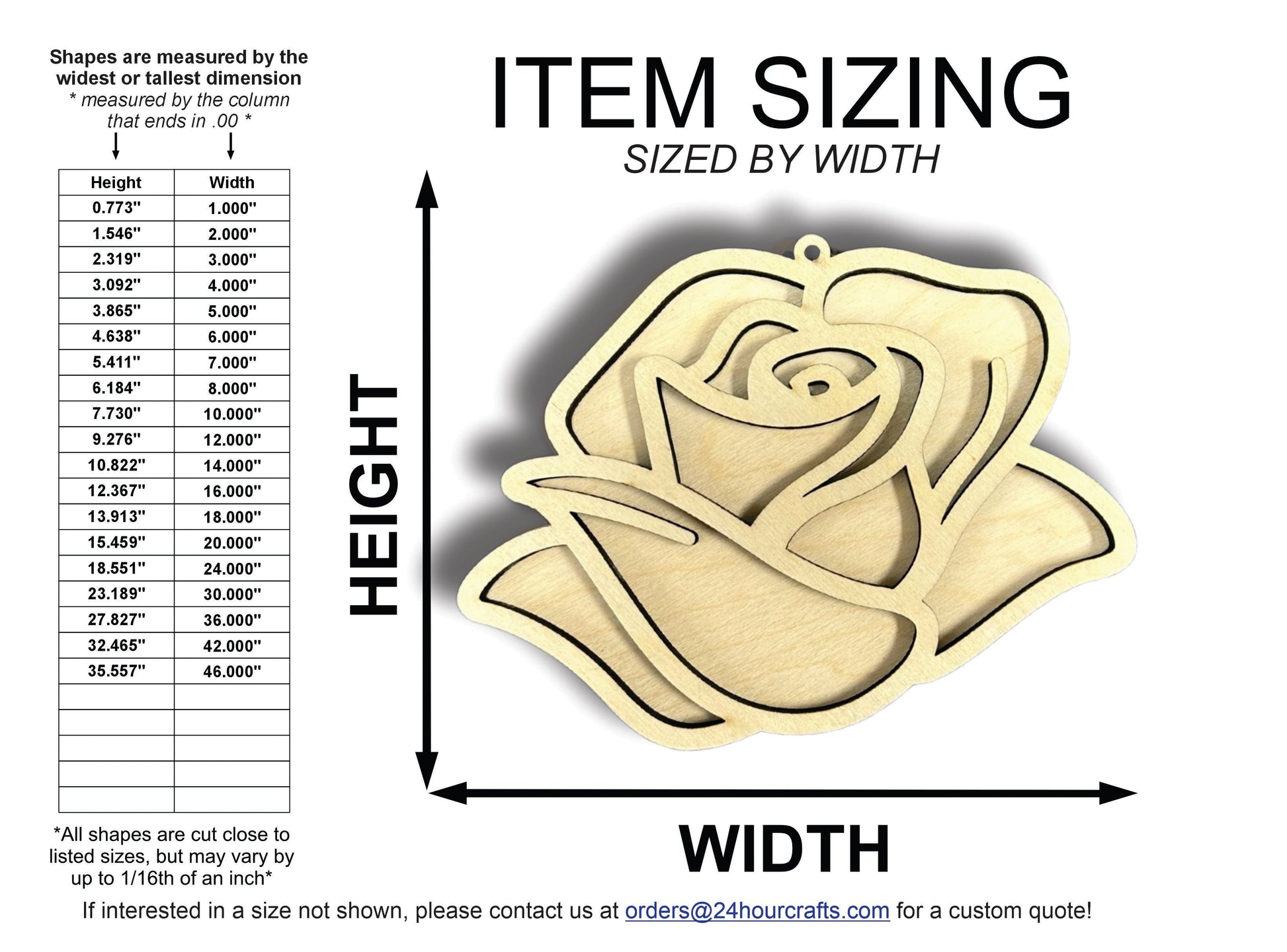 Unfinished Wood 2 Layer Rose Shadowbox Shape | DIY Craft Cutout | up to 46" DIY