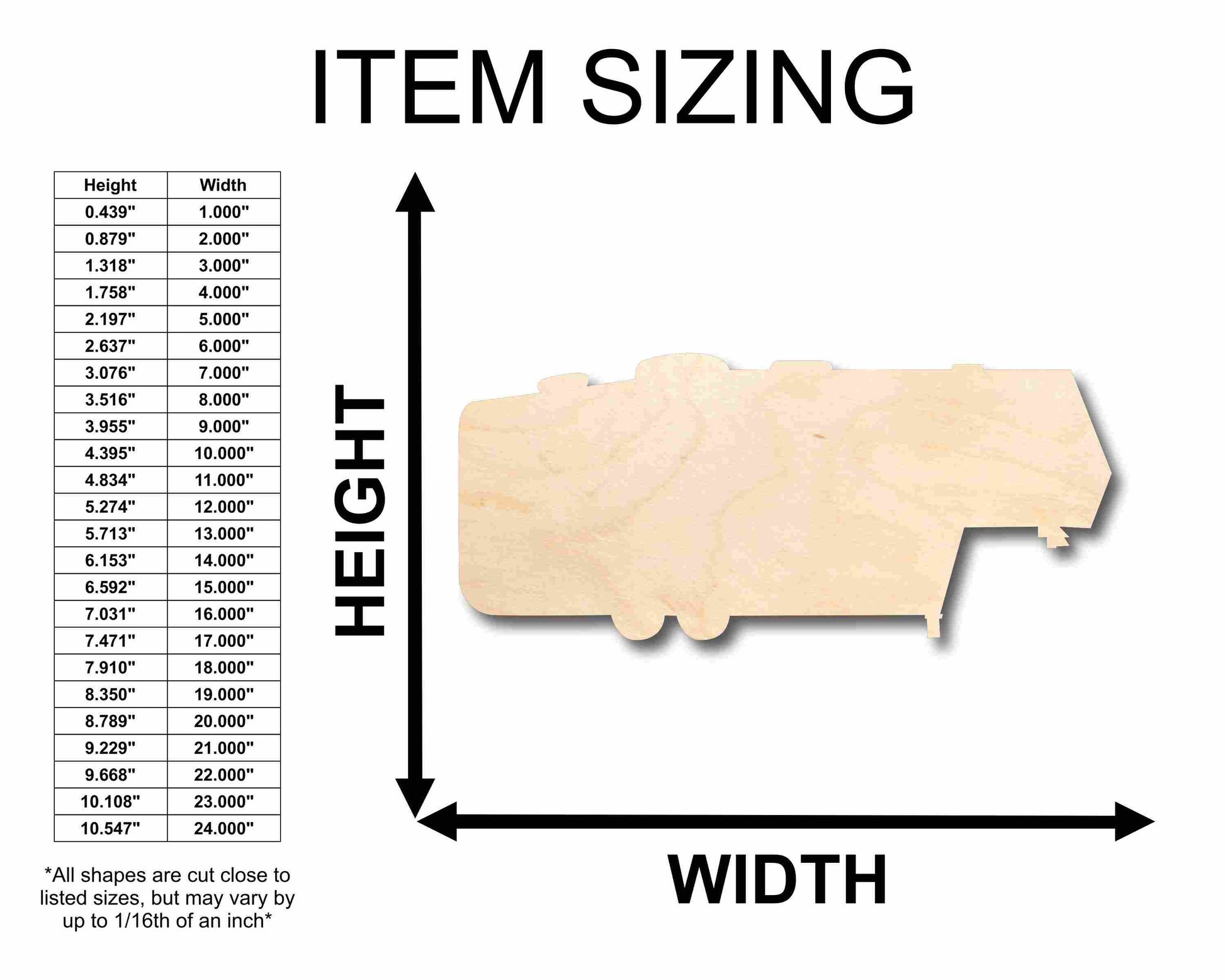 Unfinished wood shapes are available from 3" up to 48" (Some intricate shapes will not be available at smaller sizes)