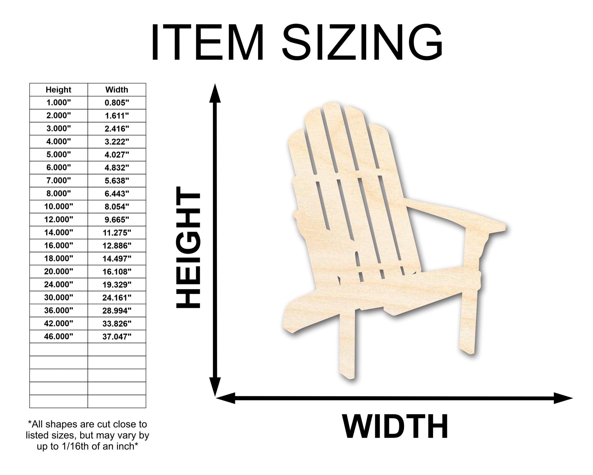 Unfinished Wood Adirondack Chair Shape | Summer | Beach | Craft Cutout | up to 46" DIY