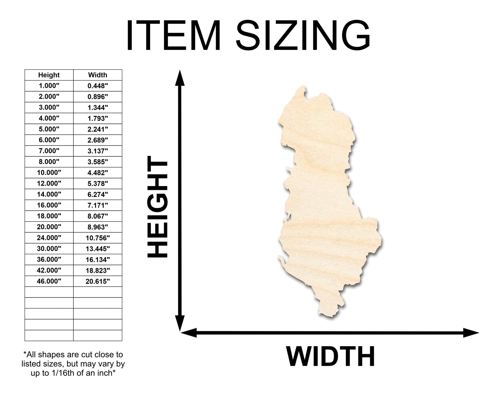 Unfinished Wood Albania Country Shape - Southeast Europe Craft - up to 46" DIY