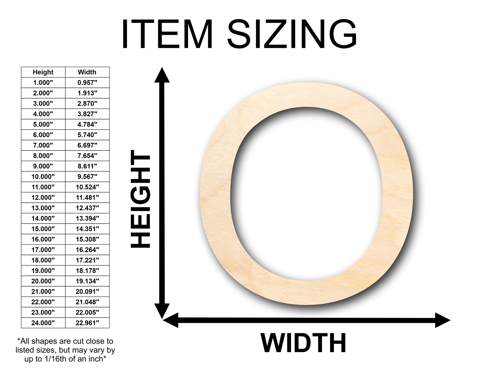 Unfinished Wood Arial Letter O Shape - Craft - up to 46" DIY