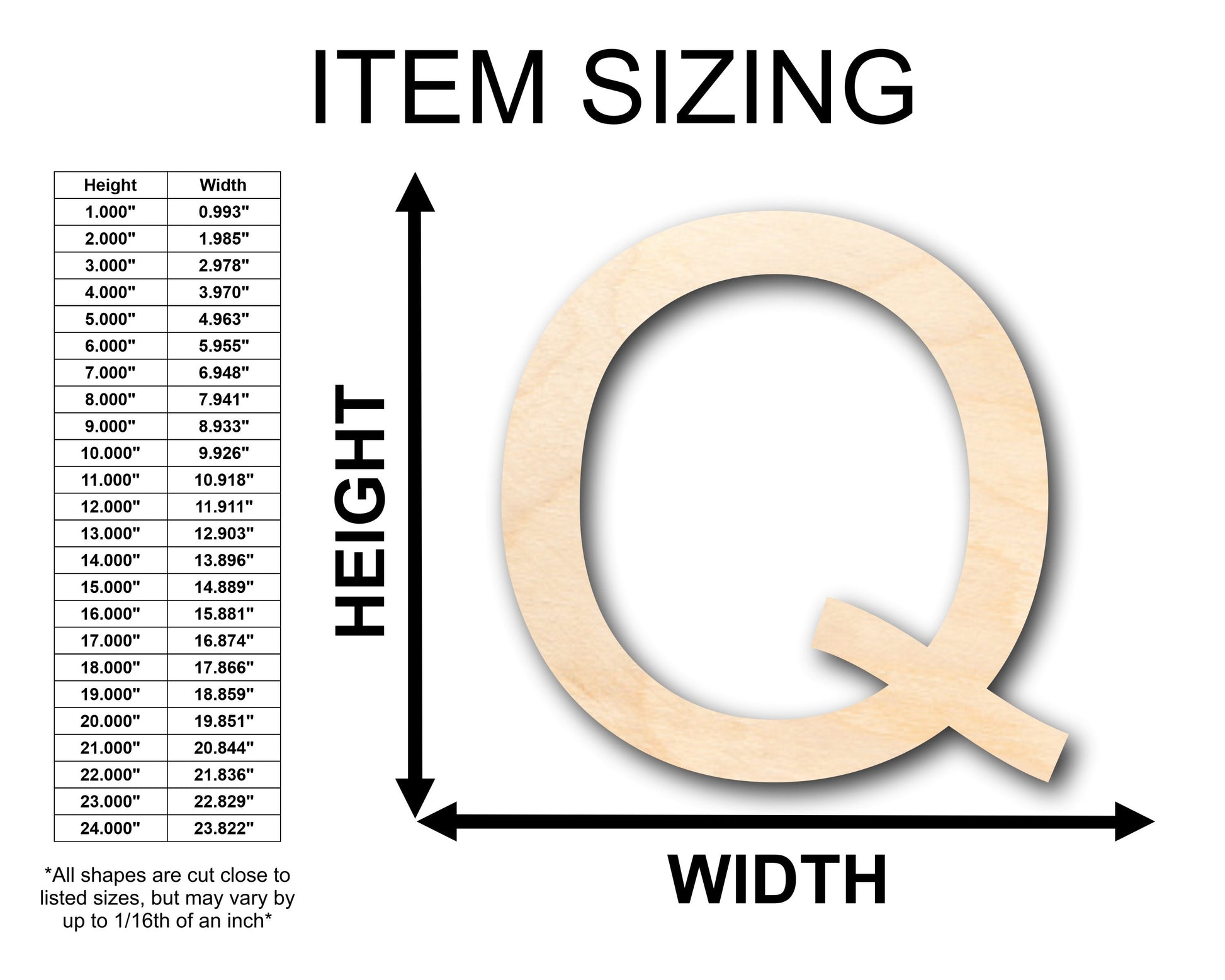 Unfinished Wood Arial Letter Q Shape - Craft - up to 46" DIY