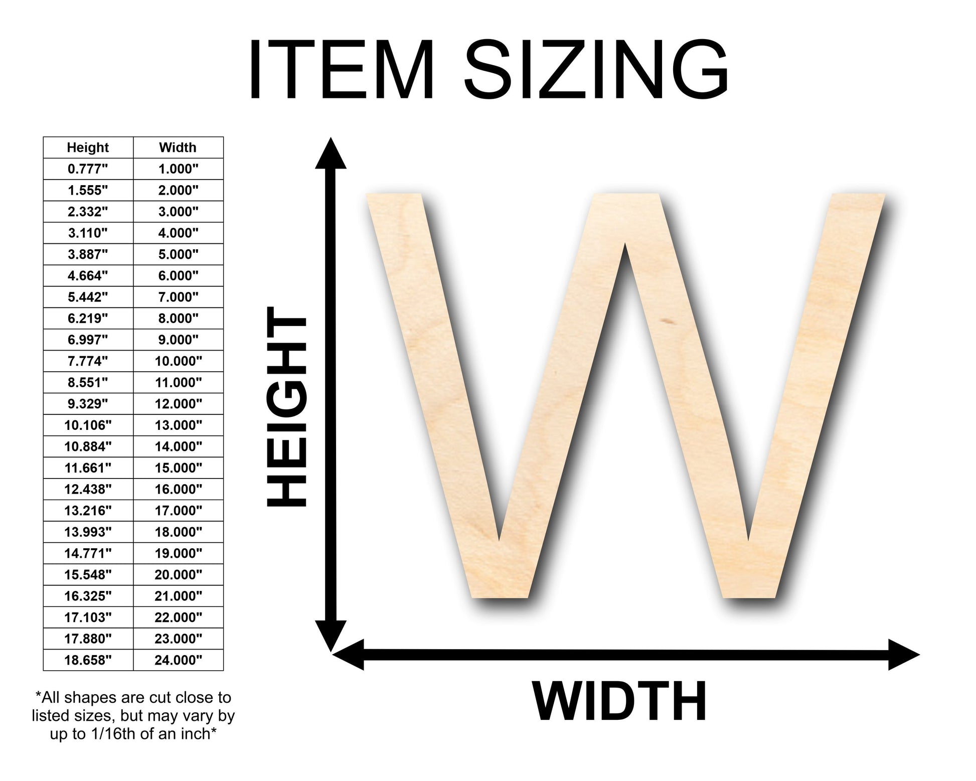 Unfinished Wood Arial Letter W Shape - Craft - up to 46" DIY