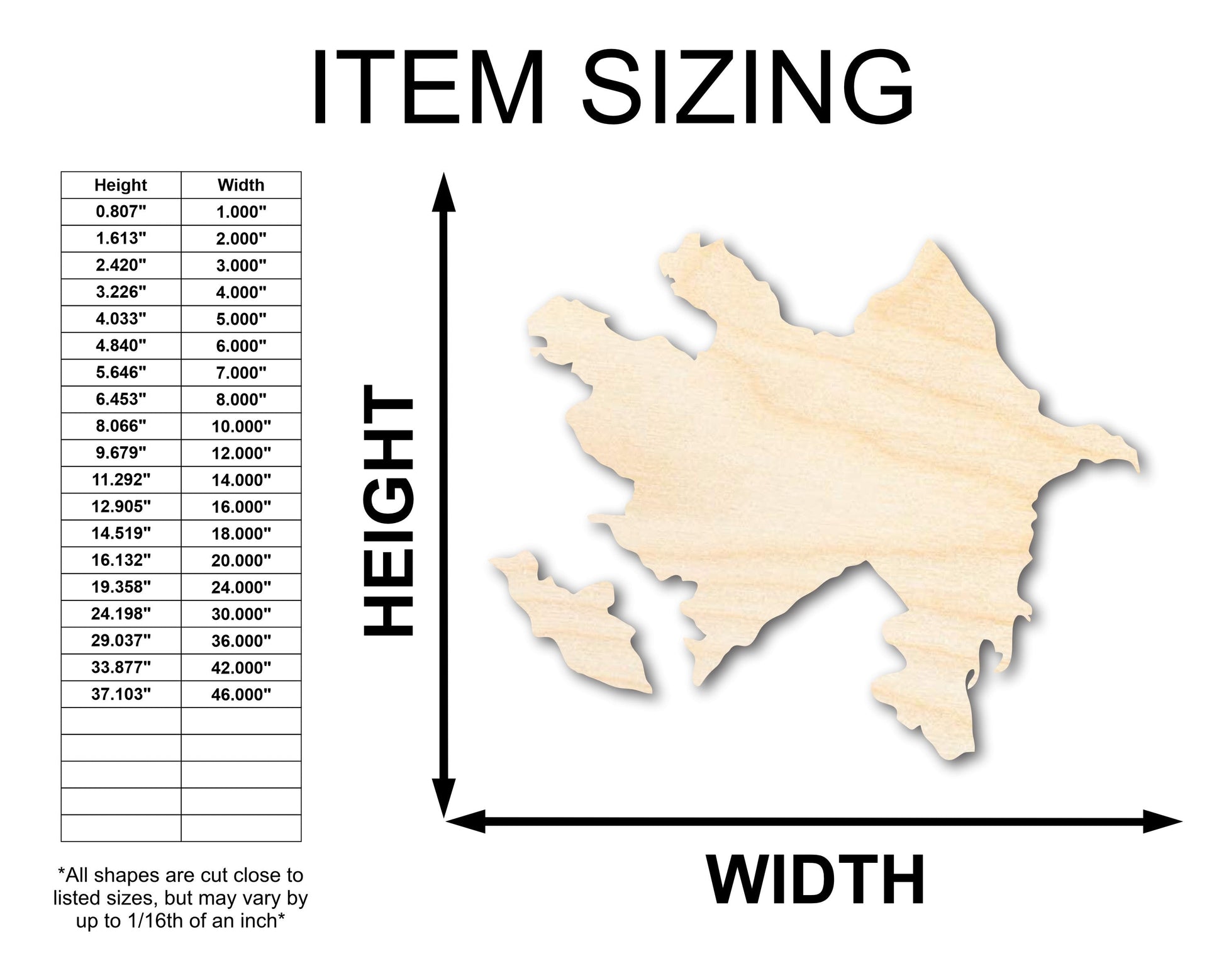 Unfinished Wood Azerbaijan Country Shape - Eastern Europe Craft - up to 46" DIY