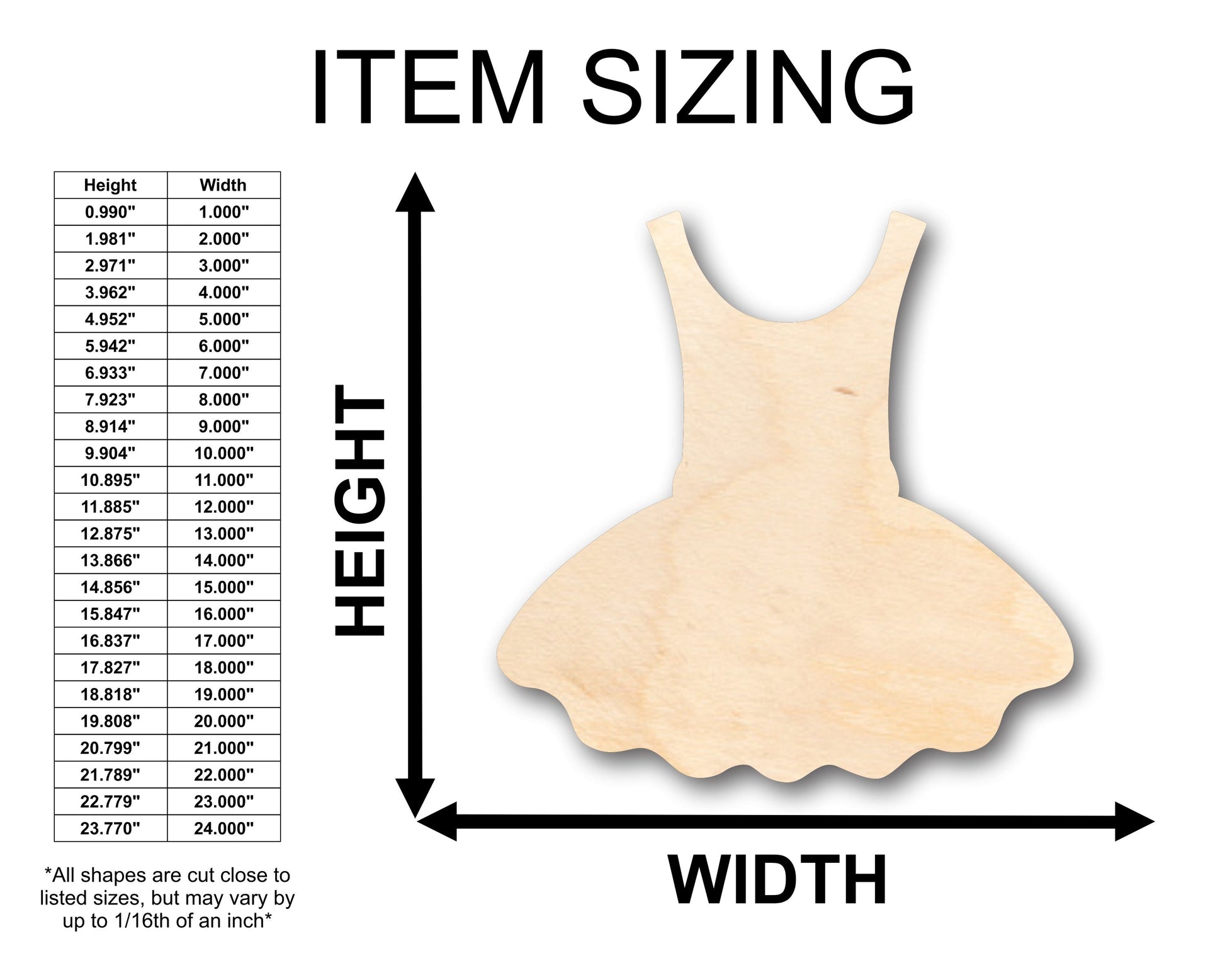 Unfinished Wood Ballet Dress Shape - Craft - up to 46" DIY