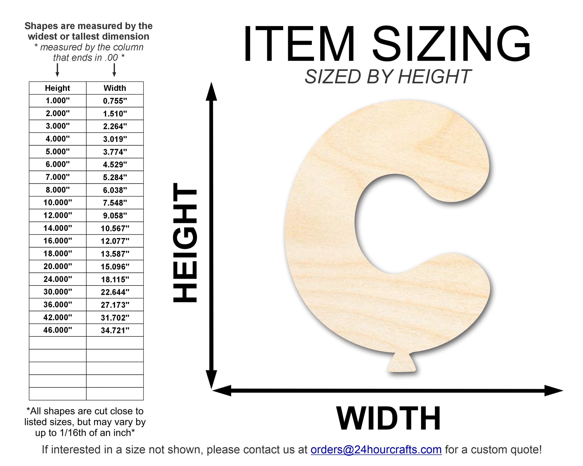 Unfinished Wood Balloon Letter C Shape | DIY Craft Cutout | up to 46" DIY