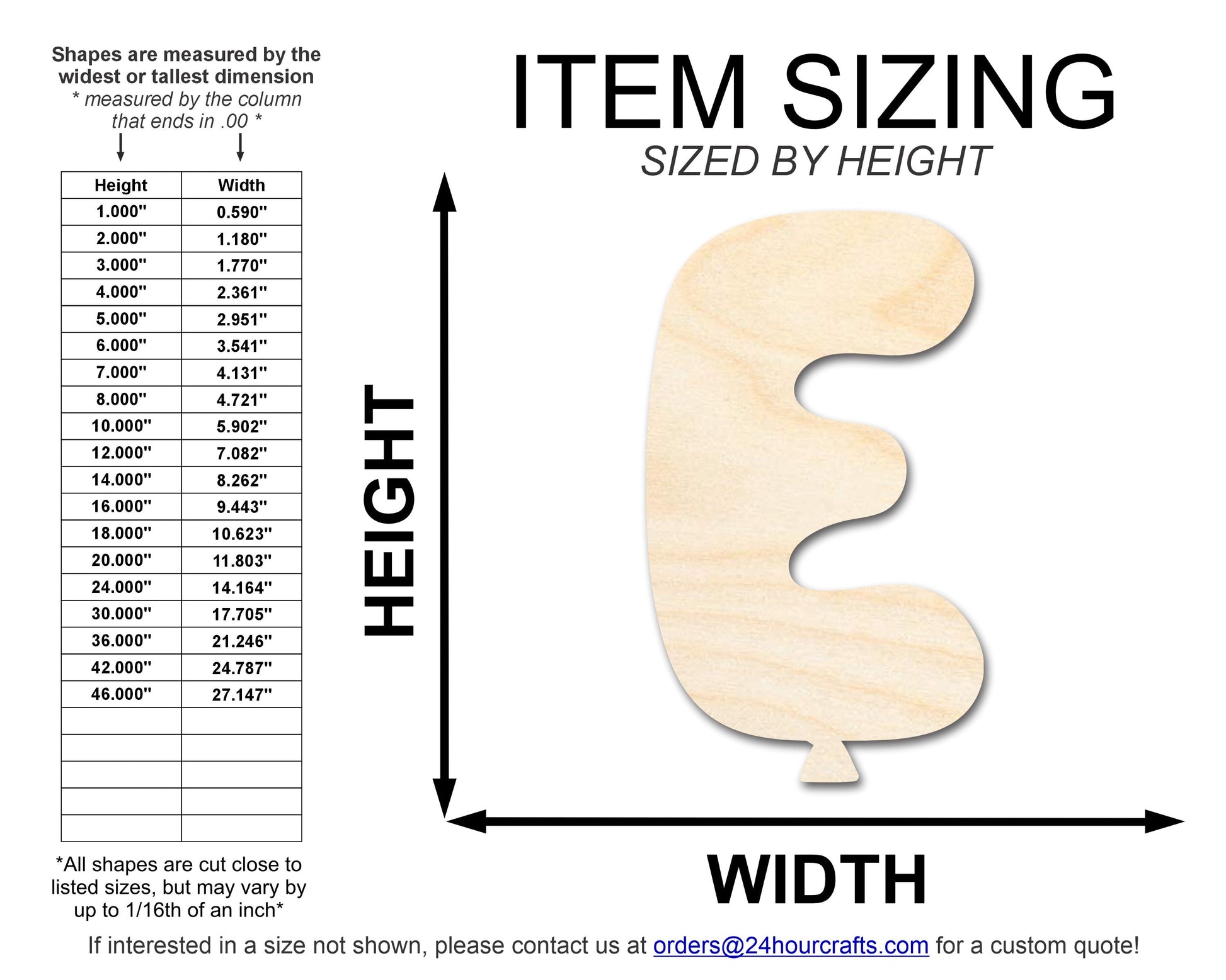Unfinished Wood Balloon Letter E Shape | DIY Craft Cutout | up to 46" DIY