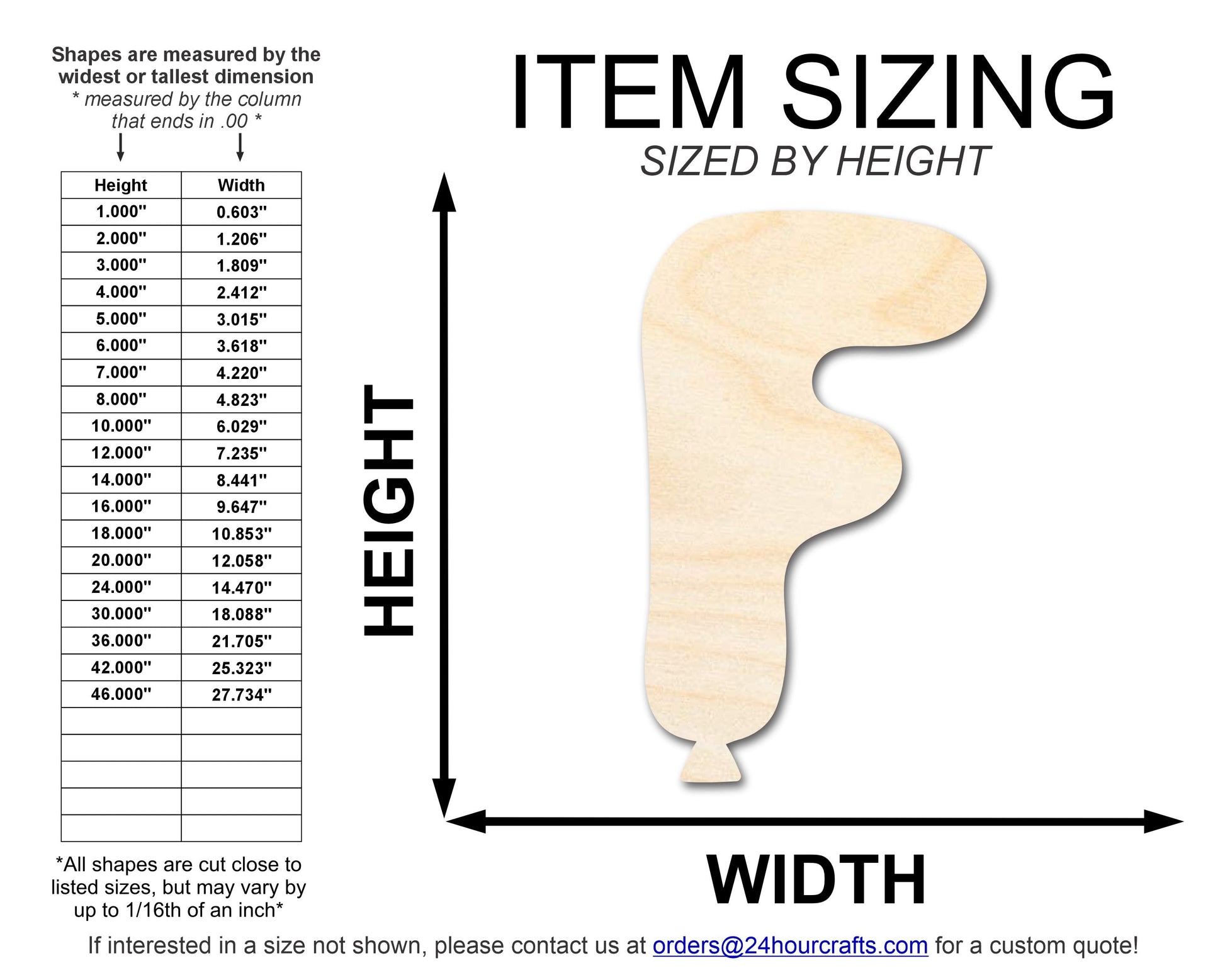 Unfinished Wood Balloon Letter F Shape | DIY Craft Cutout | up to 46" DIY