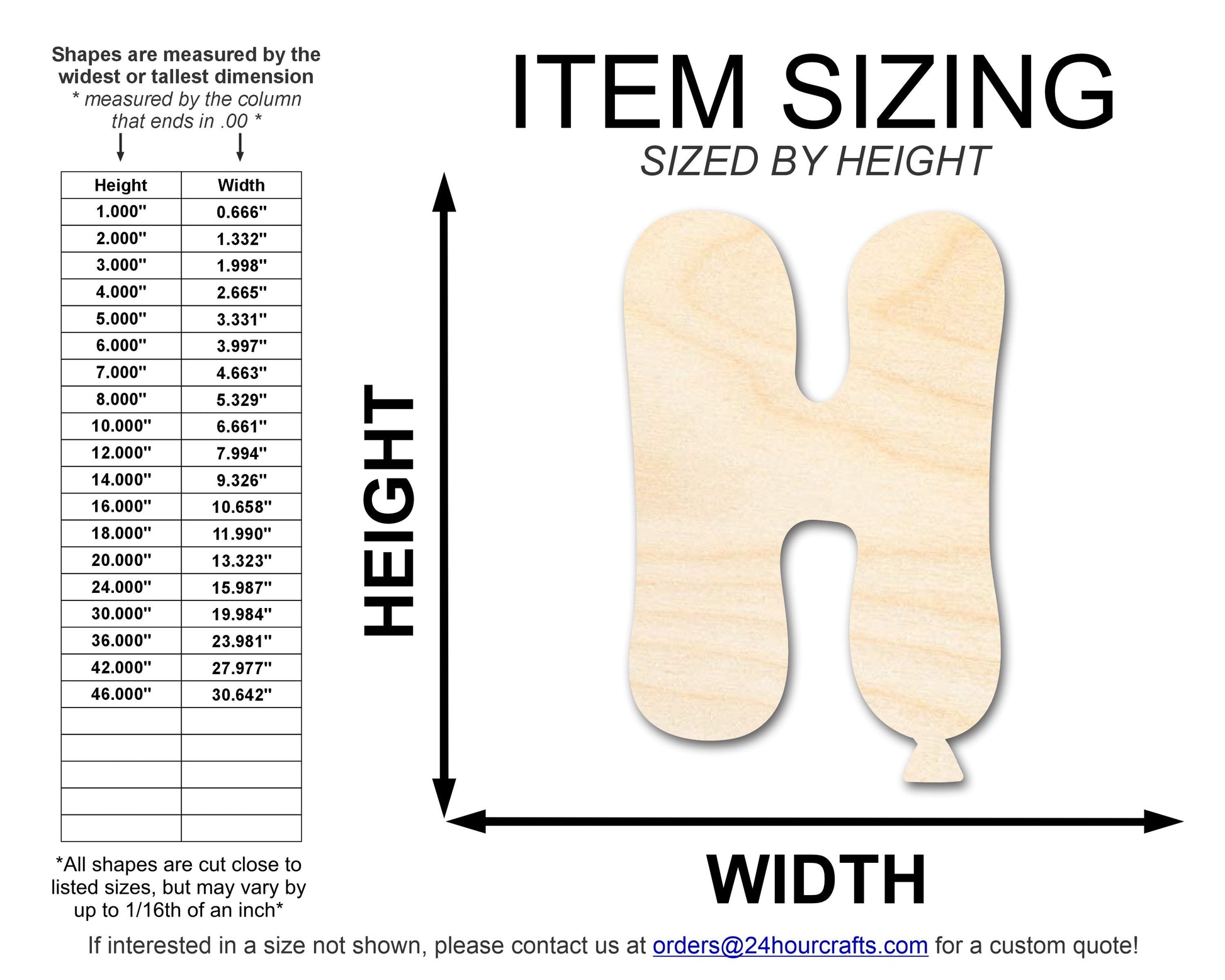 Unfinished Wood Balloon Letter H Shape | DIY Craft Cutout | up to 46" DIY