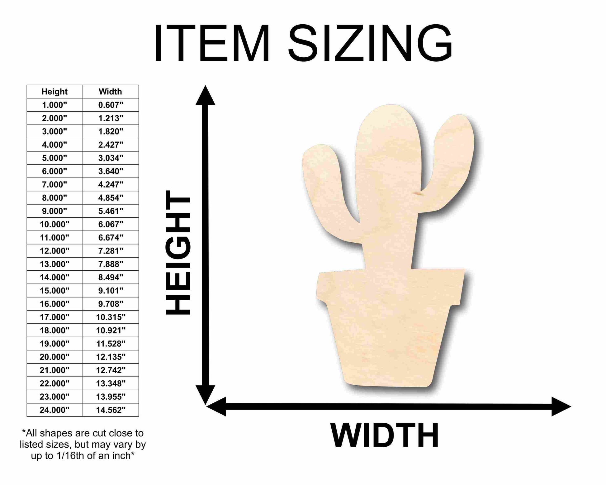 Unfinished wood shapes are available from 3" up to 48" (Some intricate shapes will not be available at smaller sizes)