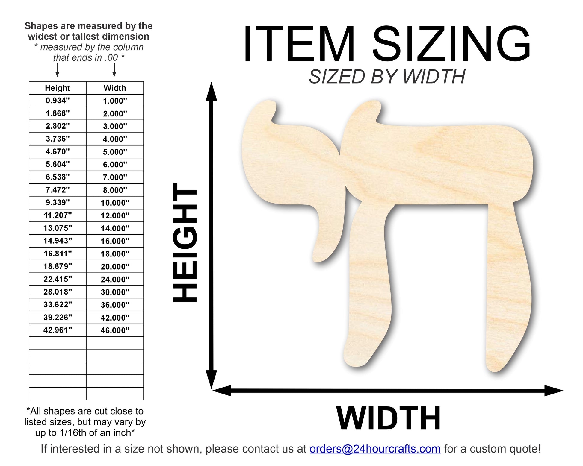 Unfinished Wood Chai Symbol Shape | DIY Craft Cutout | up to 46" DIY