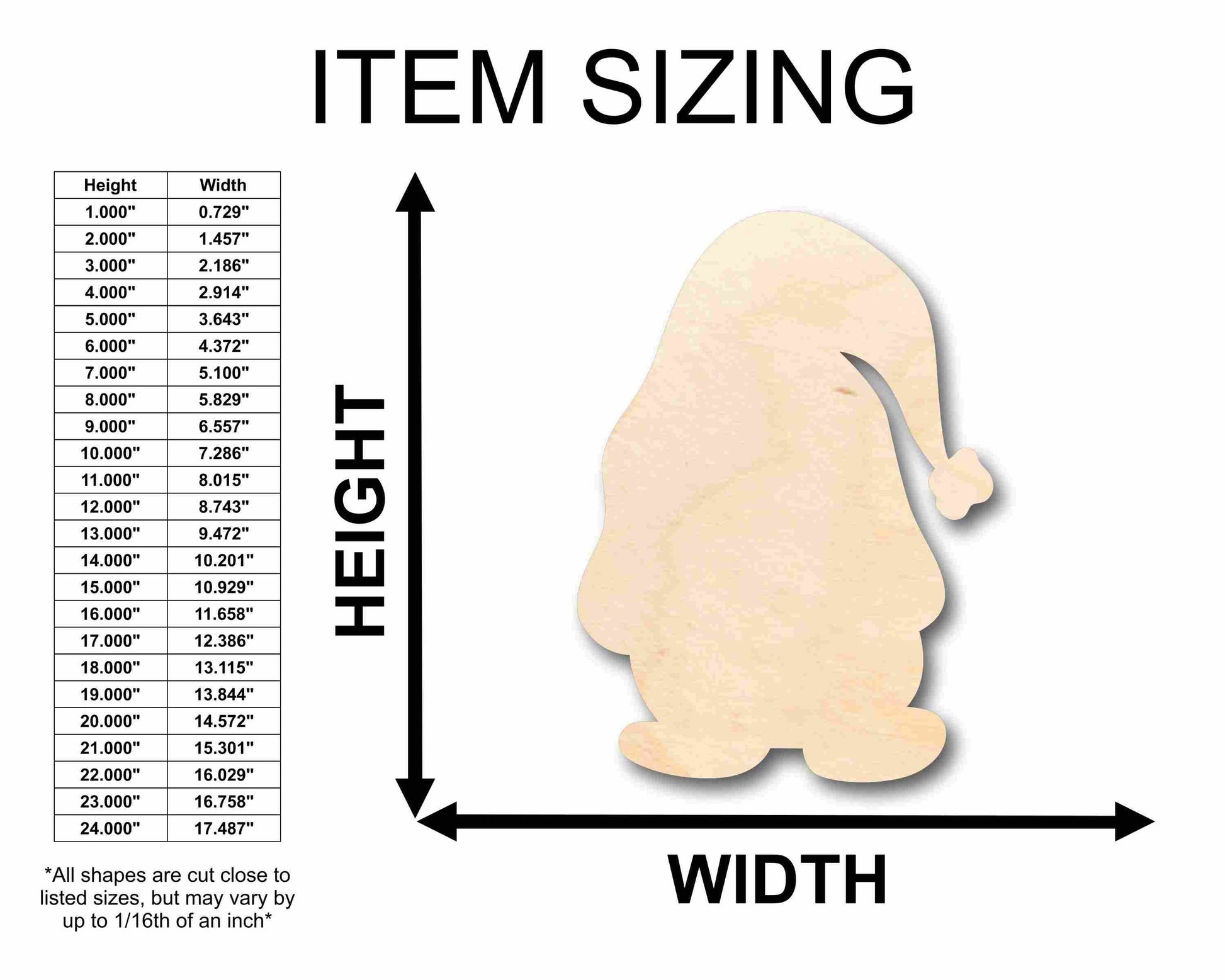 Unfinished wood shapes are available from 3" up to 48" (Some intricate shapes will not be available at smaller sizes)