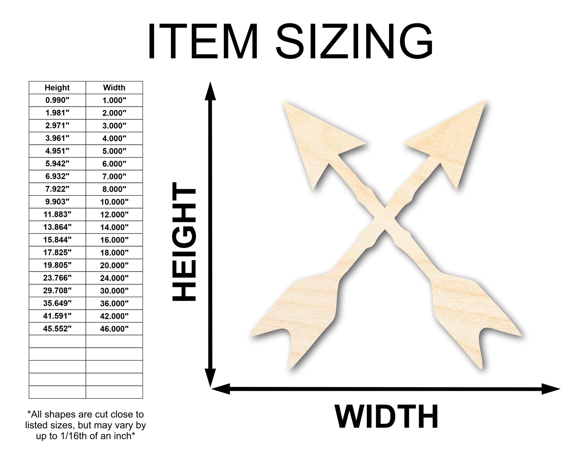 Unfinished Wood Crossed Arrows Shape | Craft Cutout | up to 46" DIY