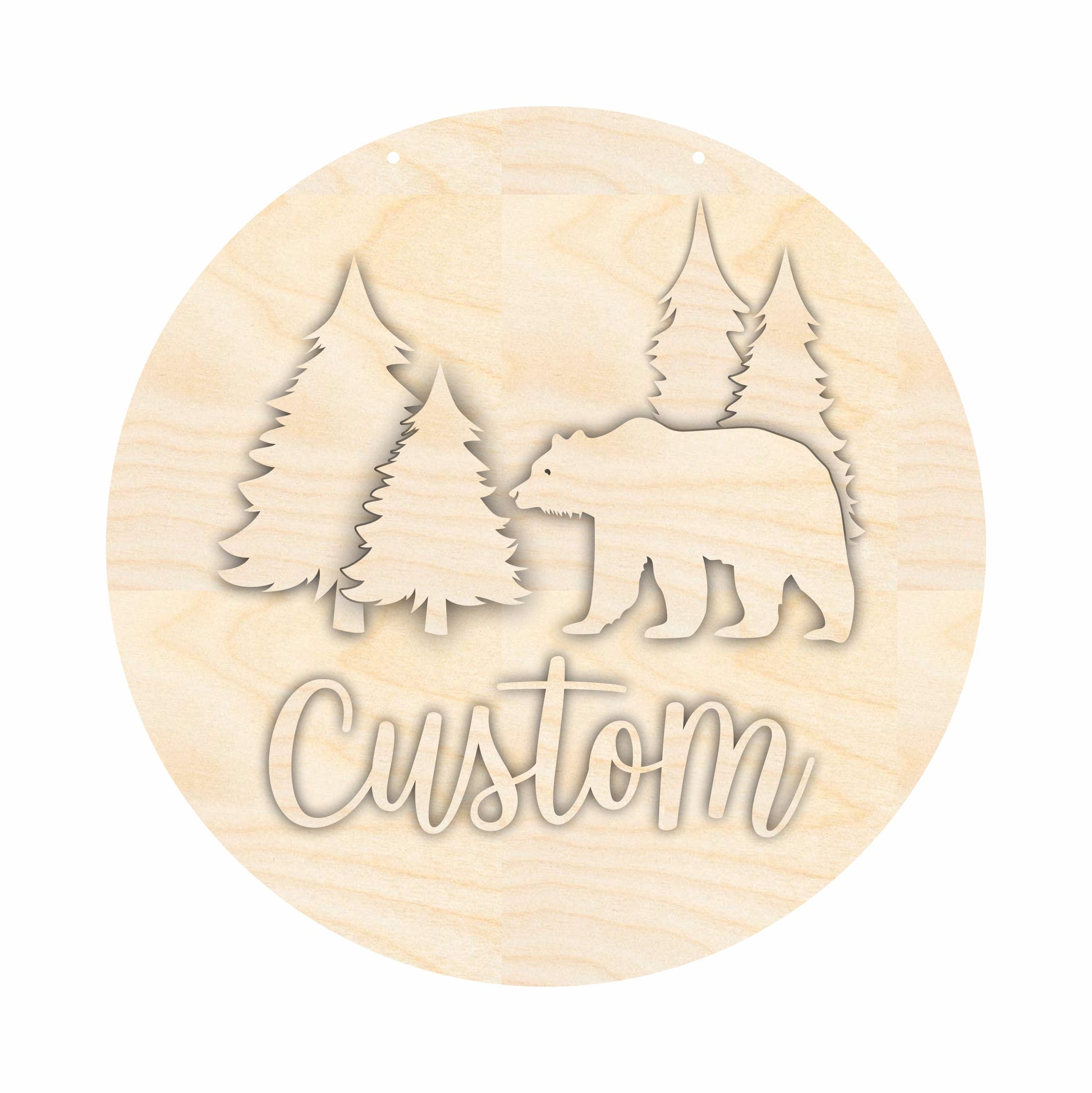 Unfinished Wood Custom Name Bear Door Sign Kit | Wood Craft Cutouts | 1/4" Thick |