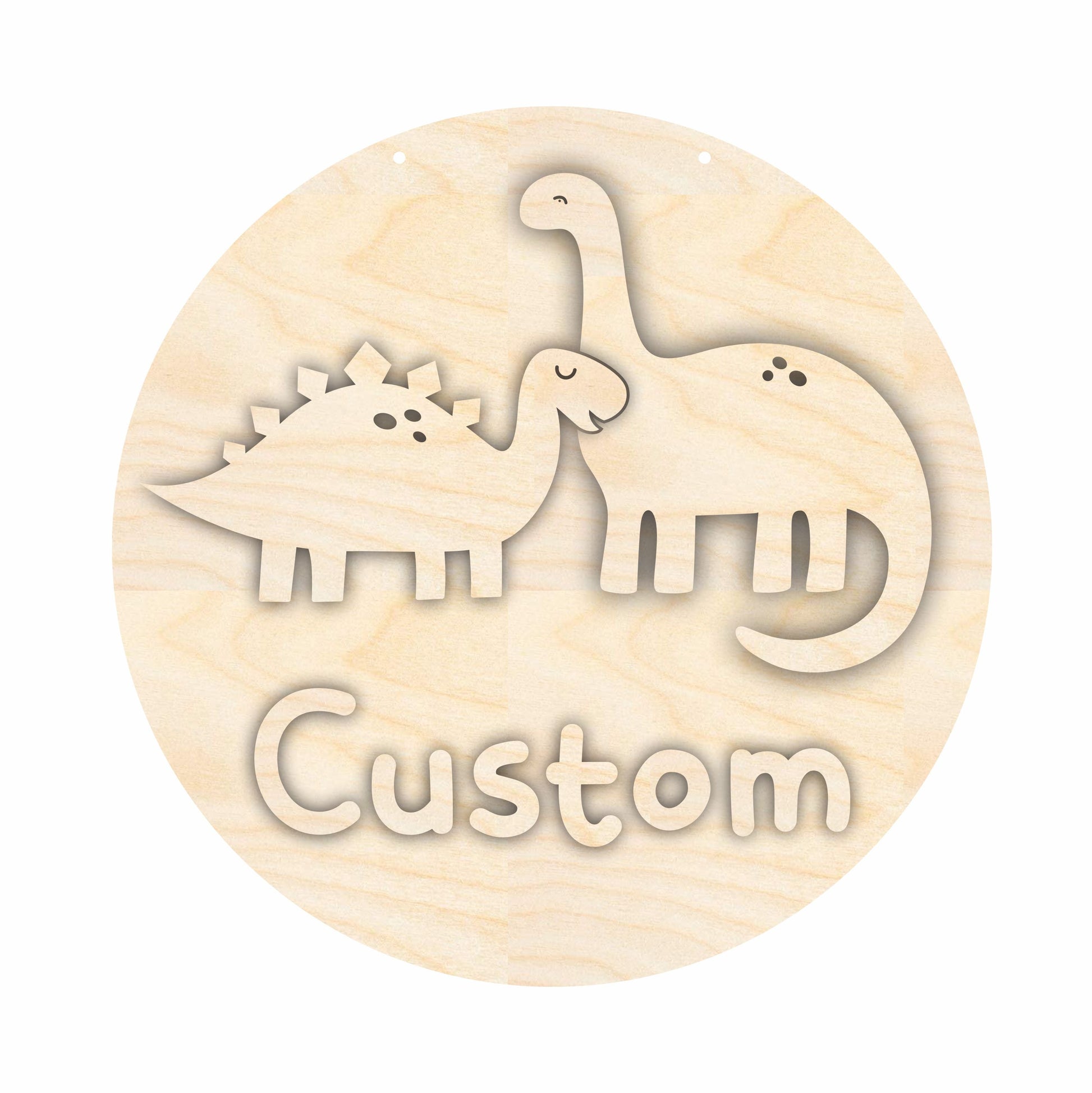 Unfinished Wood Custom Name Cute Dinosaur Door Sign Kit | Wood Craft Cutouts | 1/4" Thick |