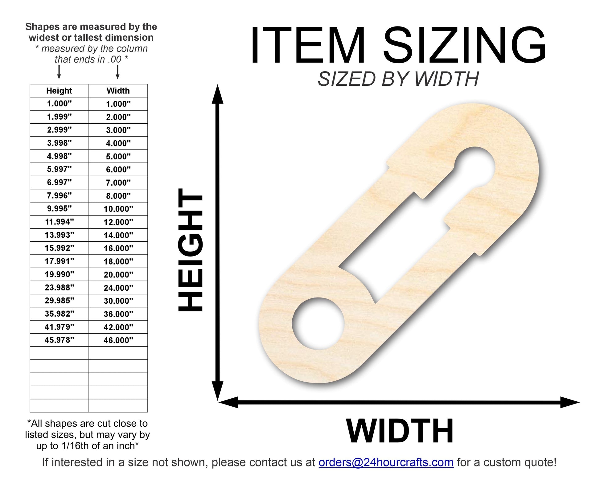 Unfinished Wood Cute Safety Pin Shape | DIY Craft Cutout | up to 46" DIY