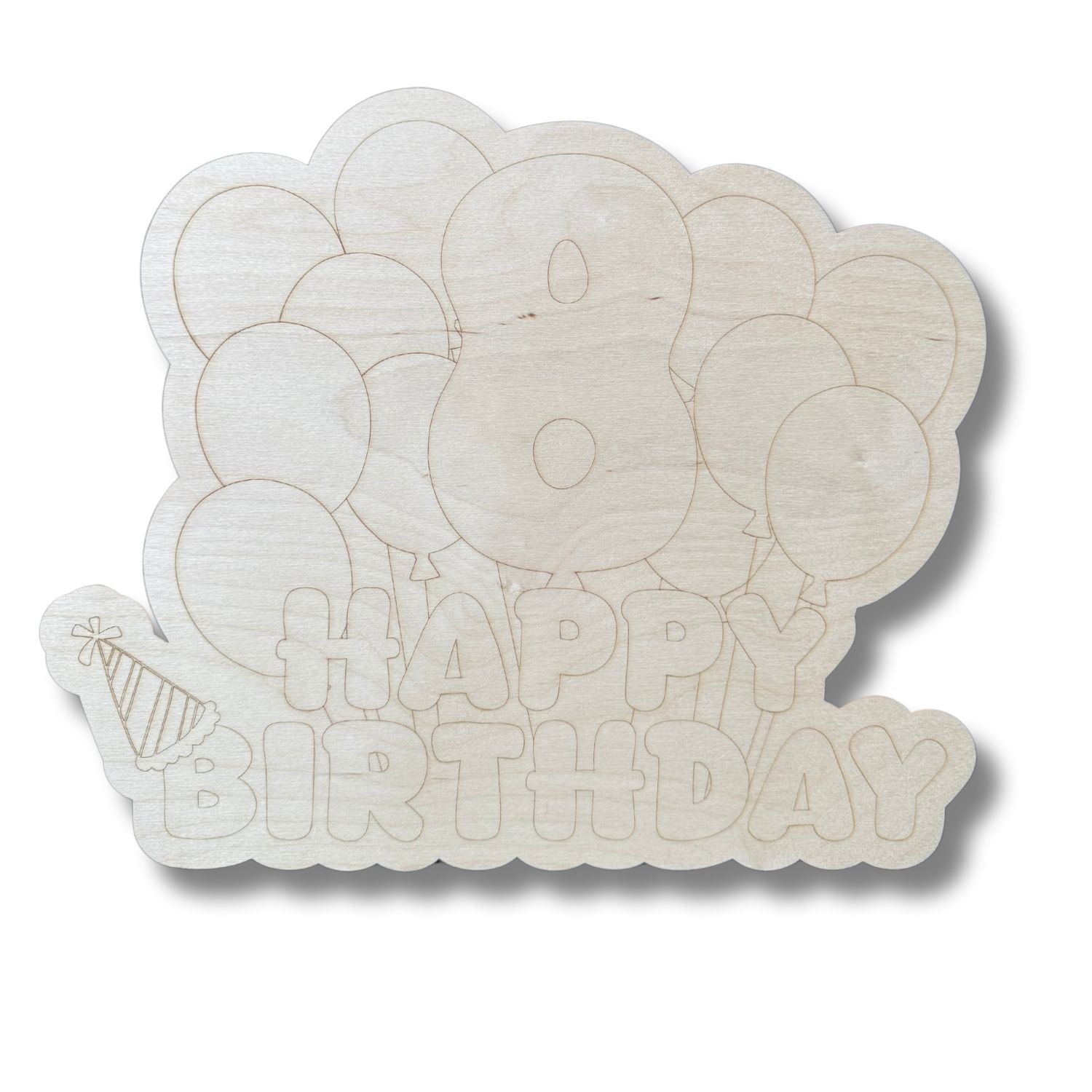 Unfinished Wood Etched 8th Birthday Balloons Shape | Paint By Line Crafts | up to 30" DIY