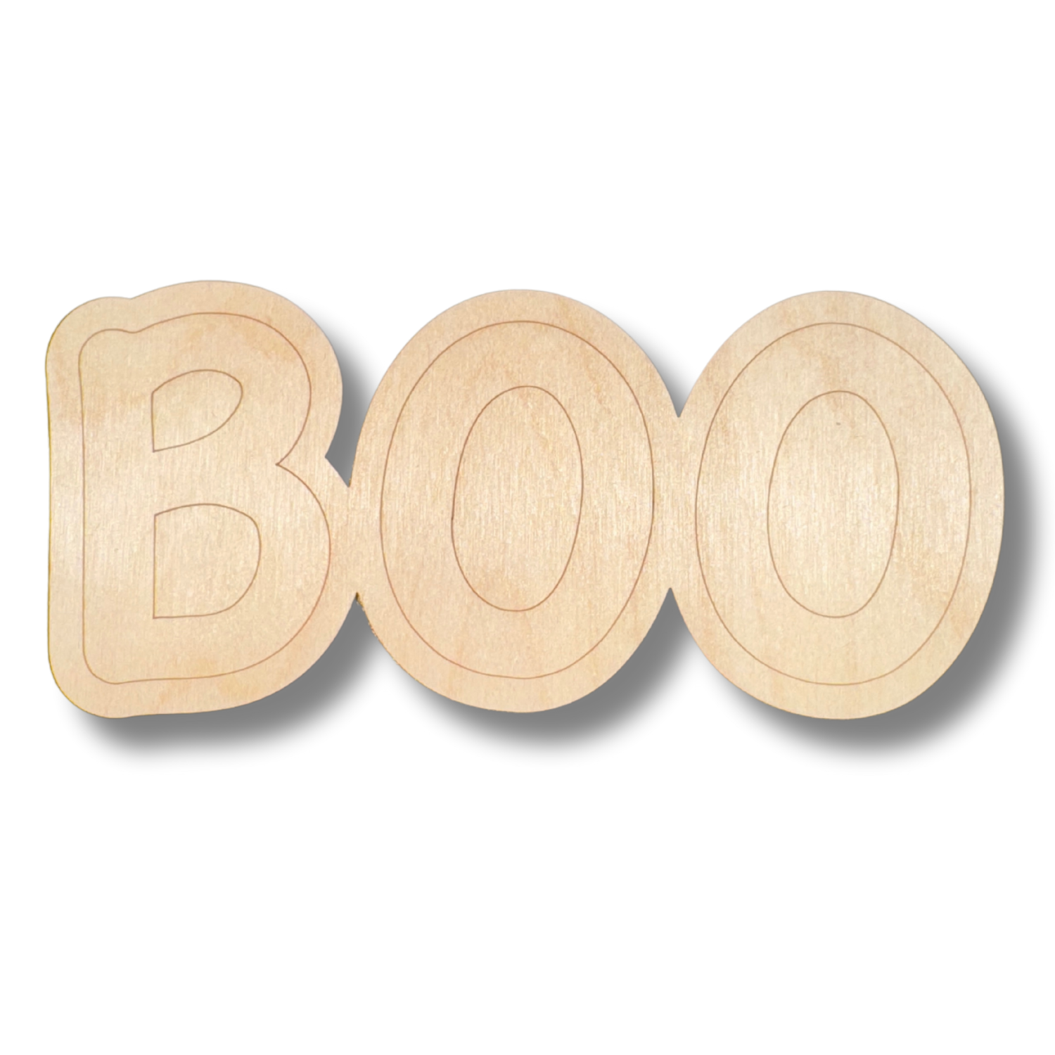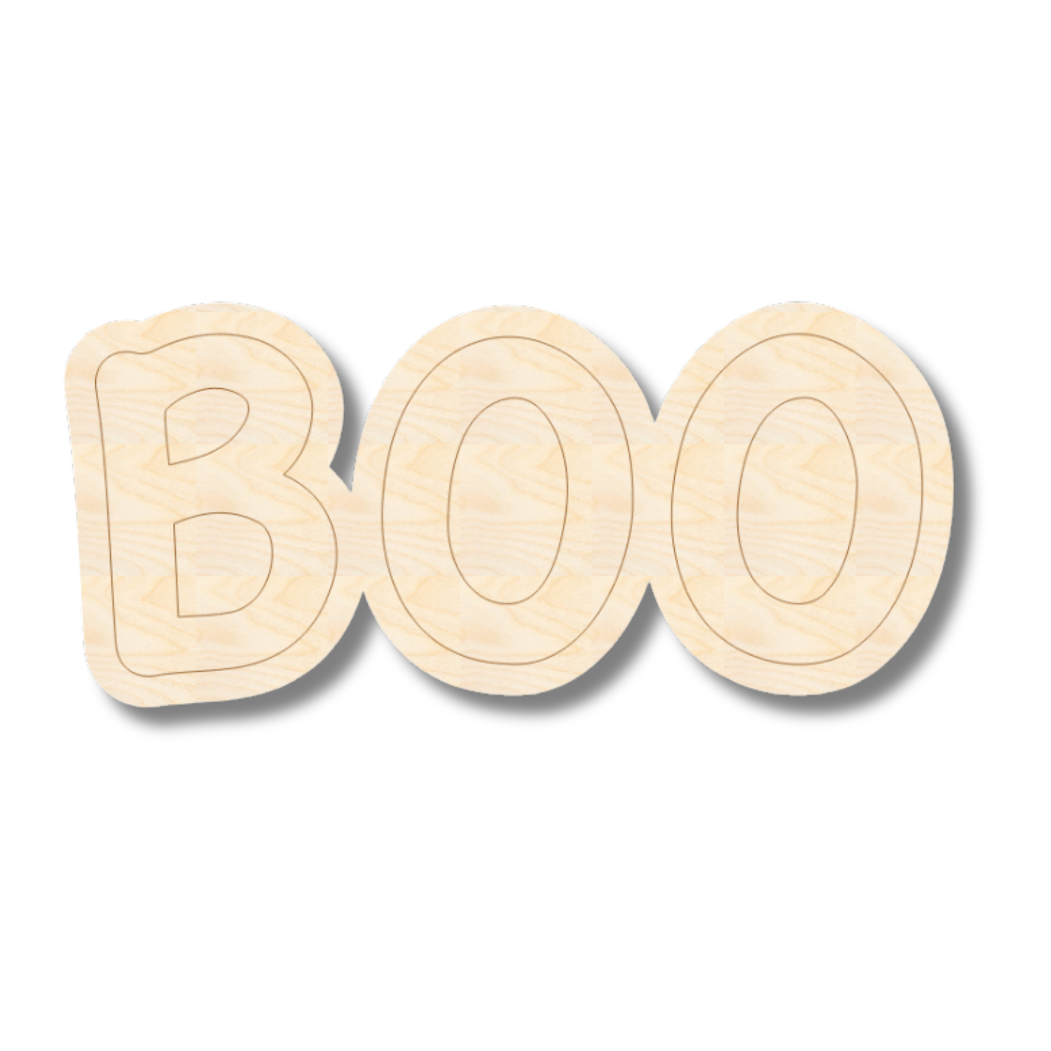 Unfinished Wood Etched BOO Shape | Paint By Line Crafts | up to 30" DIY