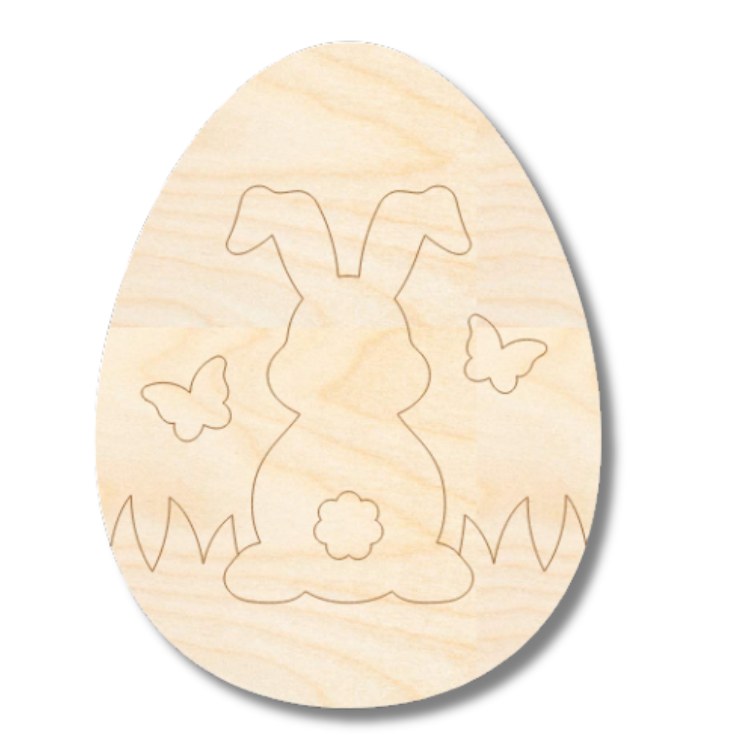 Unfinished Wood Etched Bunny Pattern Egg Shape | Paint By Line Crafts | up to 30" DIY