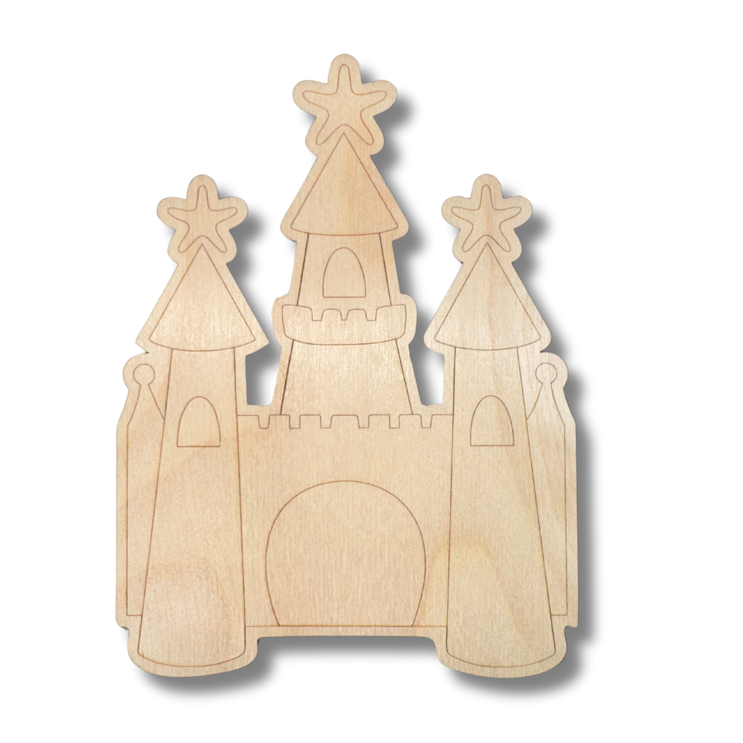 Unfinished Wood Etched Castle Shape | Paint By Line Crafts | up to 30" DIY