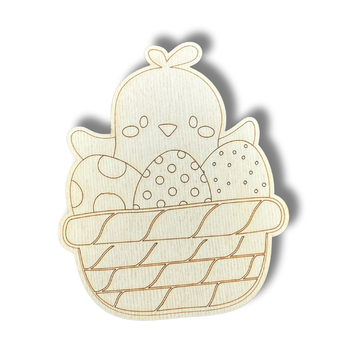 Unfinished Wood Etched Chick Easter Basket Shape | Paint By Line Crafts | up to 30" DIY