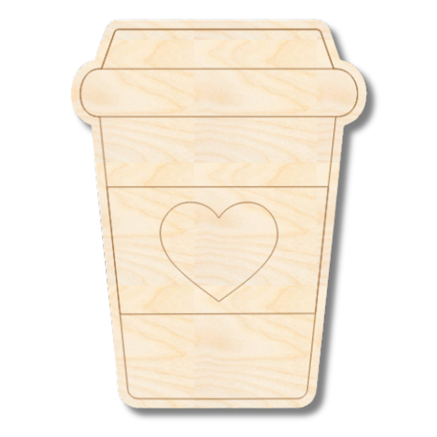 Unfinished Wood Etched Cute Latte Shape | Paint By Line Crafts | up to 30" DIY