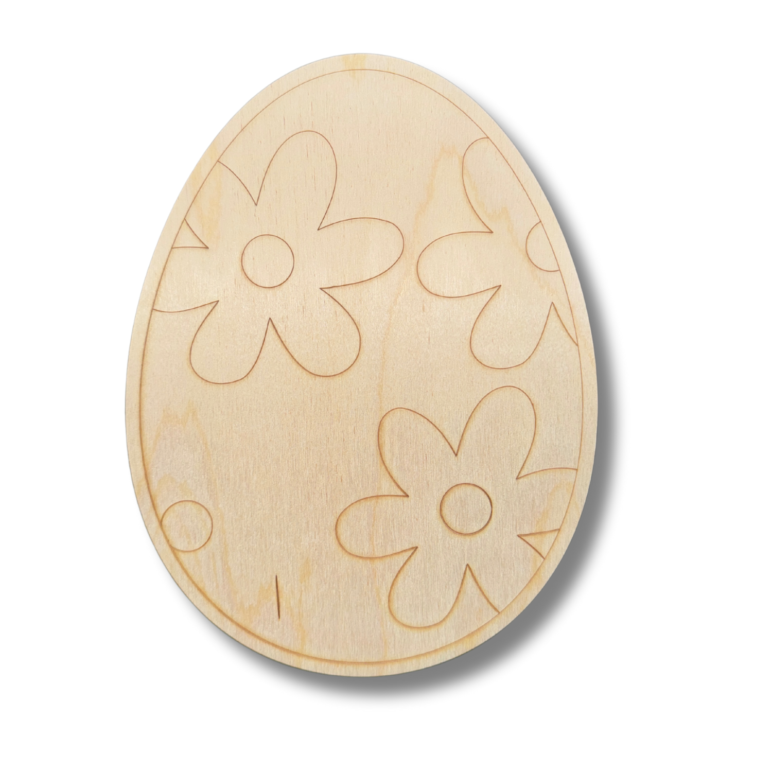Unfinished Wood Etched Flower Easter Egg Shape | Paint By Line Crafts | up to 30" DIY