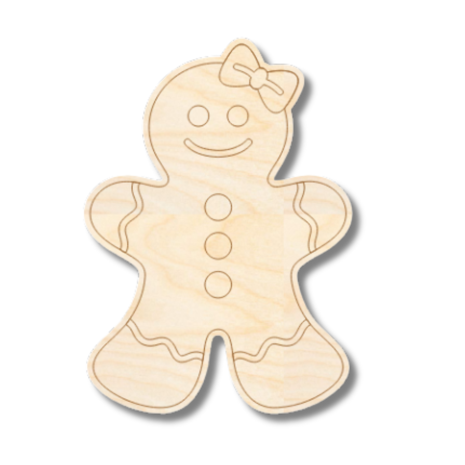 Unfinished Wood Etched Girl Gingerbread Shape | Paint By Line Crafts | up to 30" DIY
