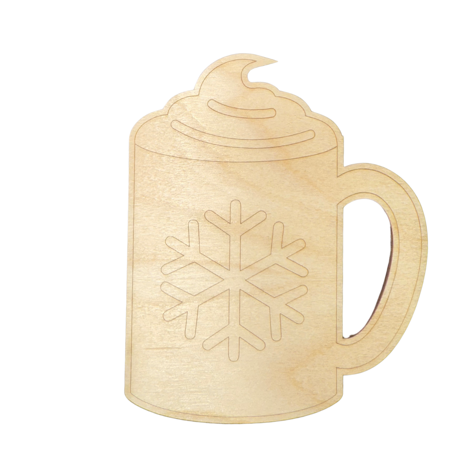 Unfinished Wood Etched Hot Chocolate Shape | Paint By Line Crafts | up to 30" DIY