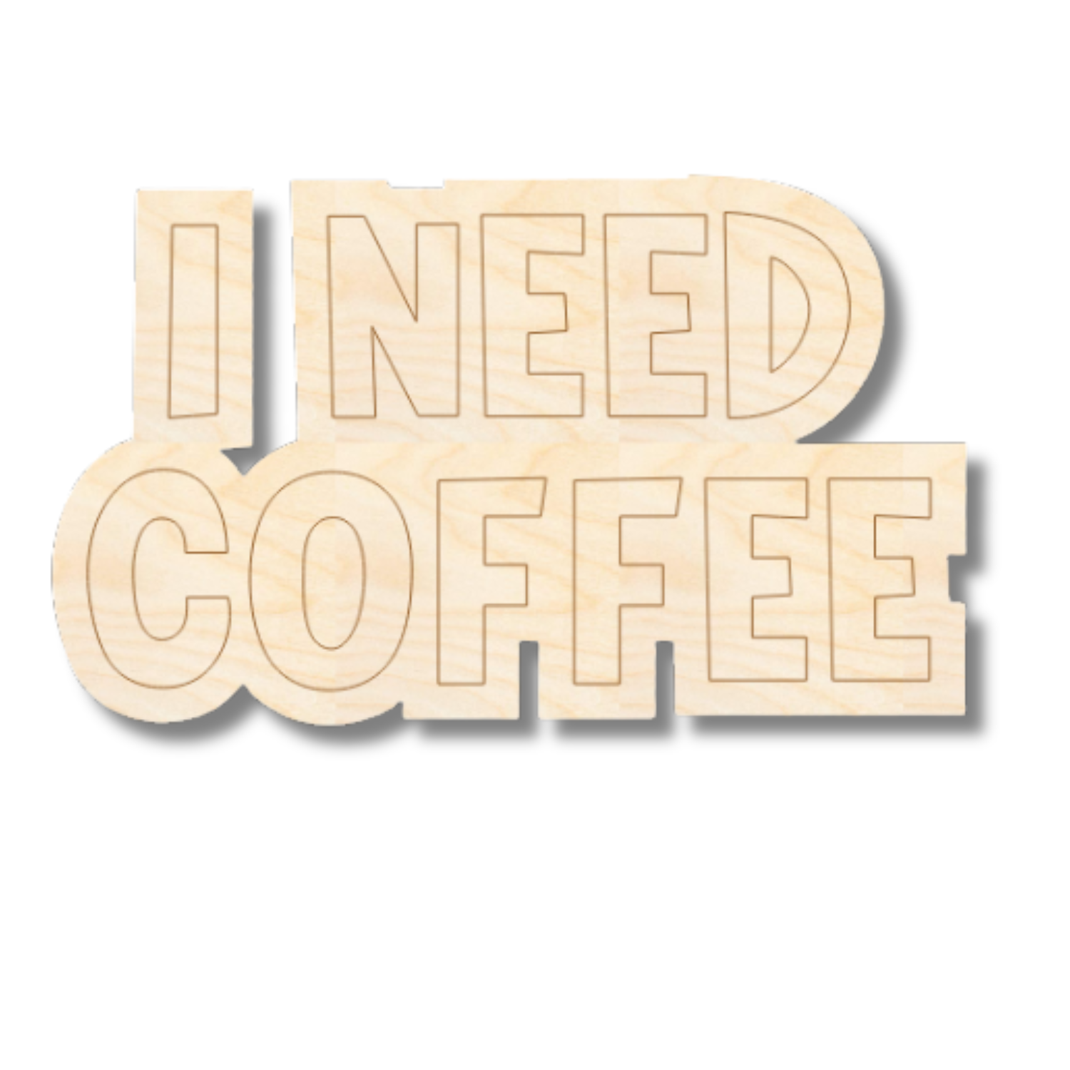 Unfinished Wood Etched I Need Coffee Shape | Paint By Line Crafts | up to 30" DIY