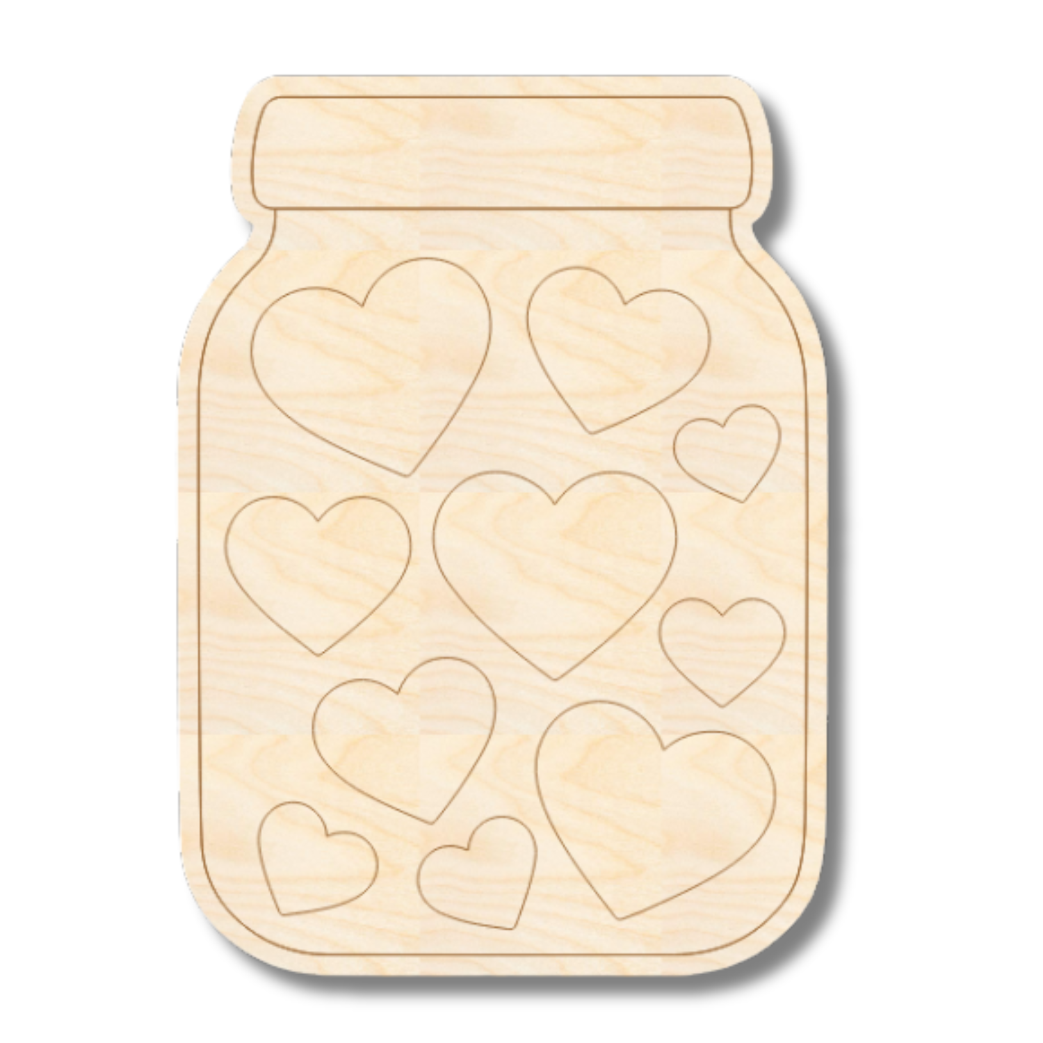 Unfinished Wood Etched Jar of Hearts Shape | Paint By Line Crafts | up to 30" DIY