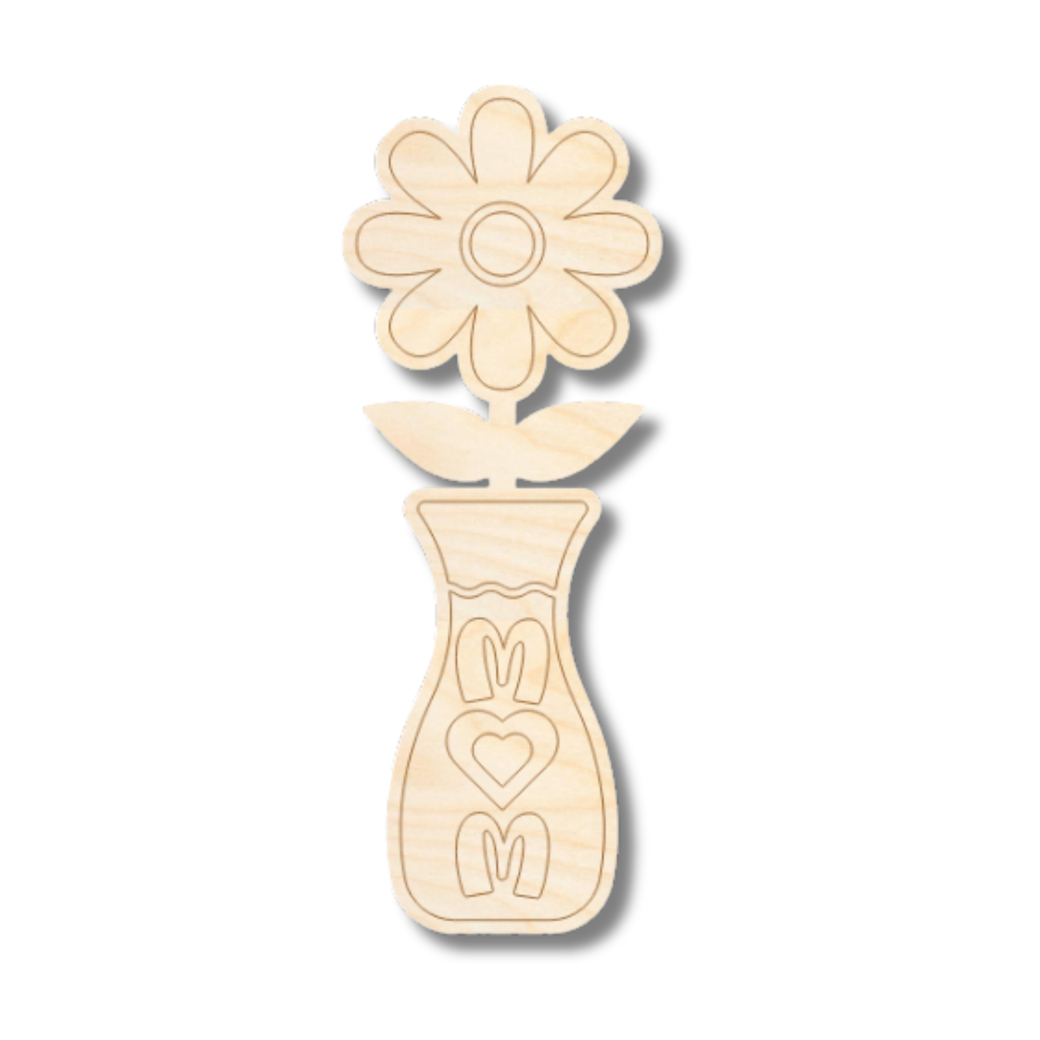 Unfinished Wood Etched Mom Flower Vase Shape | Paint By Line Crafts | up to 30" DIY