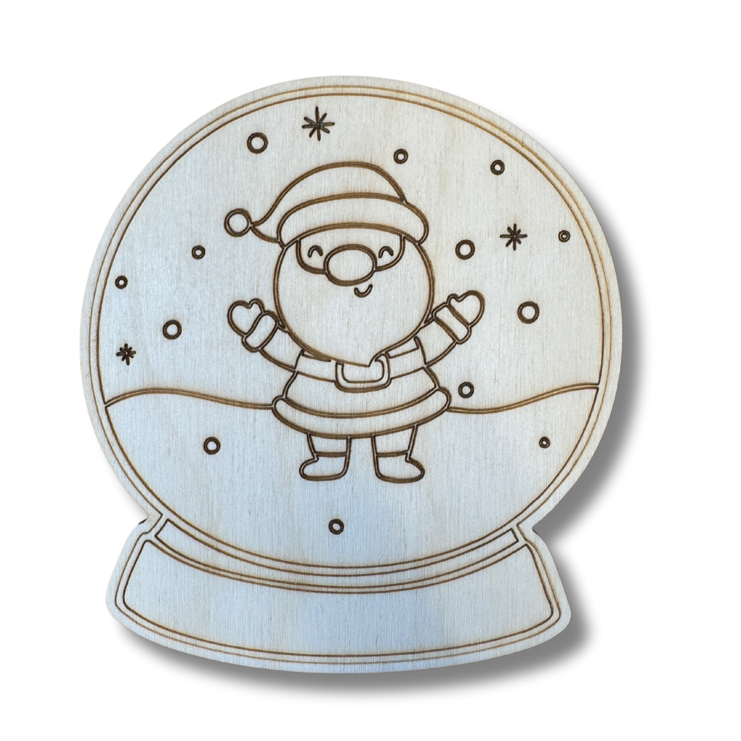 Unfinished Wood Etched Santa Snow Globe Shape | Paint By Line Crafts | up to 30" DIY