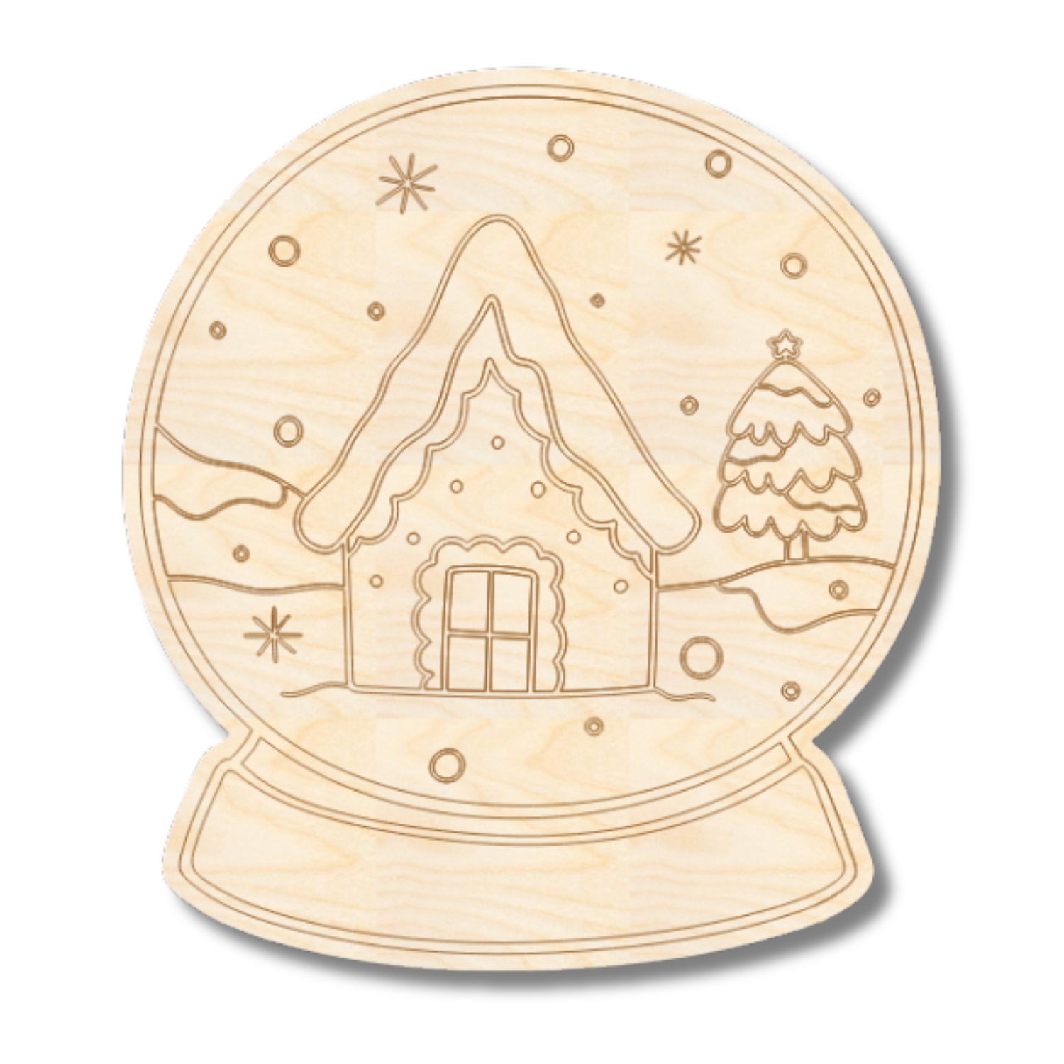 Unfinished Wood Etched Snowy House Snowglobe Shape | Paint By Line Crafts | up to 30" DIY