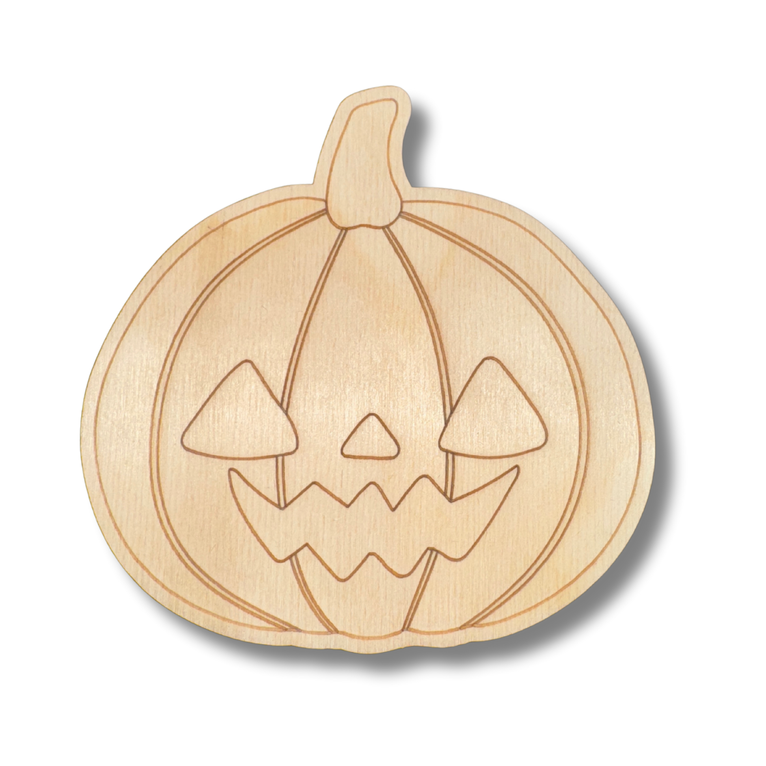 Unfinished Wood Etched Spooky Jack o' Lantern Shape | Paint By Line Crafts | up to 30" DIY