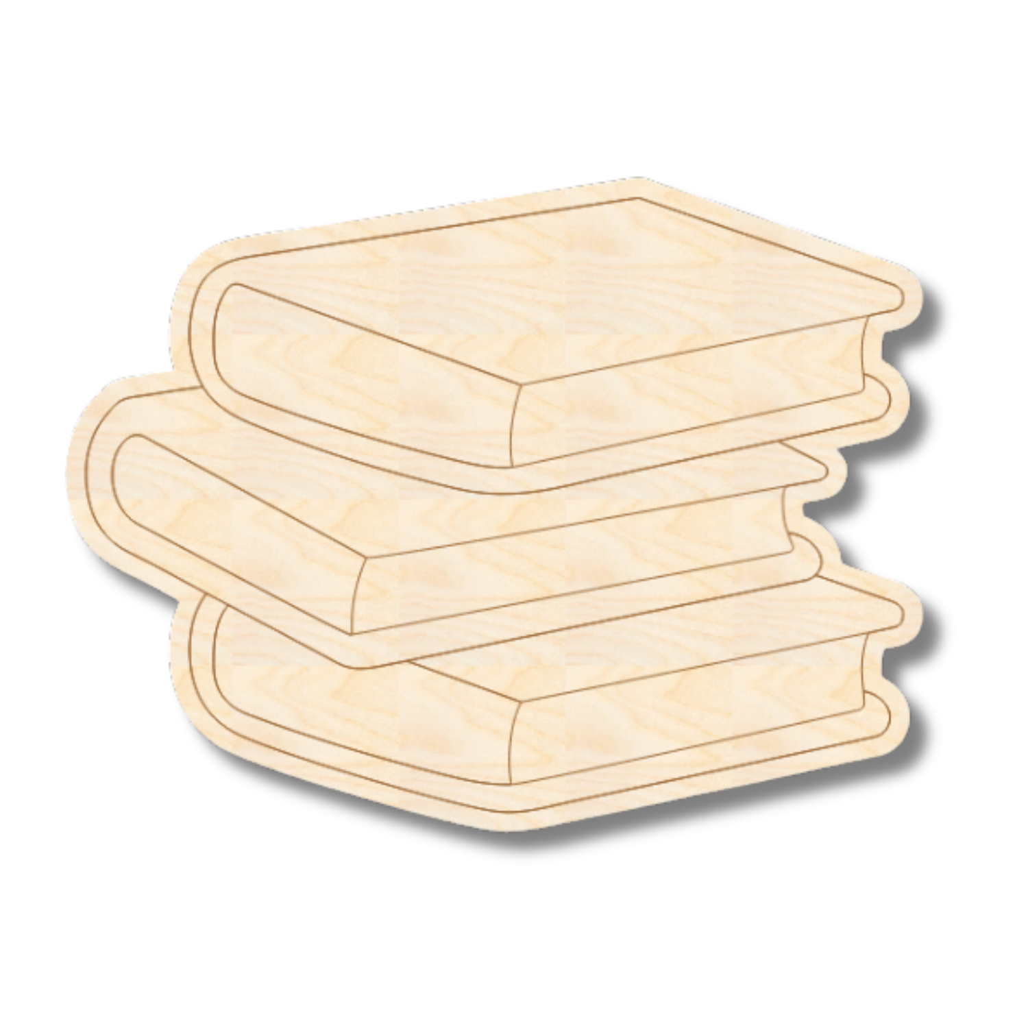 Unfinished Wood Etched Stack of Books Shape | Paint By Line Crafts | up to 30" DIY