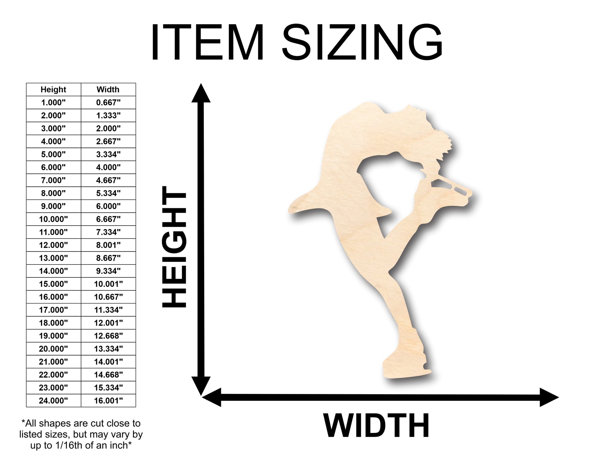 Unfinished Wood Figure Skating Shape - Craft - up to 46" DIY