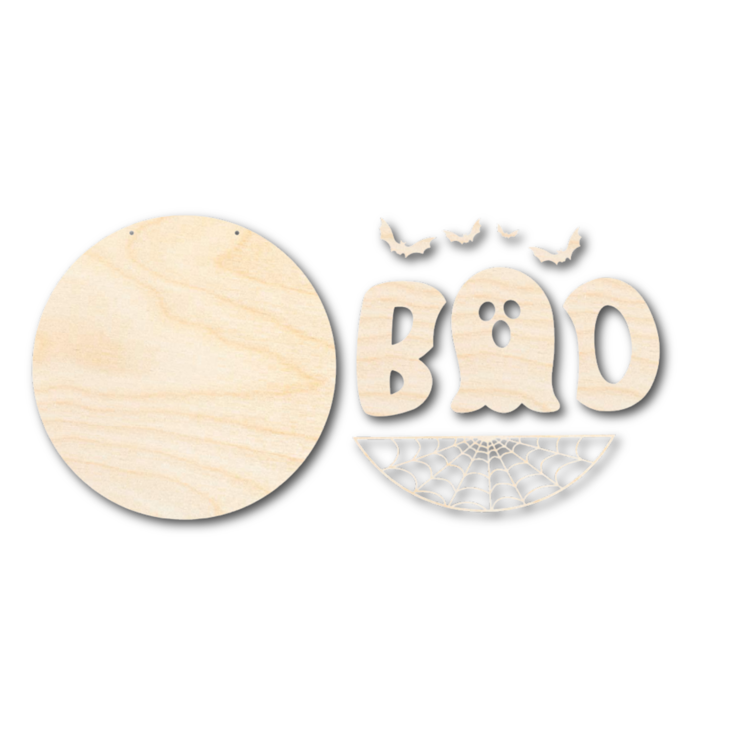 Unfinished Wood Ghost Boo Halloween Door Sign Kit | Wood Craft Cutouts | 1/4" Thick |