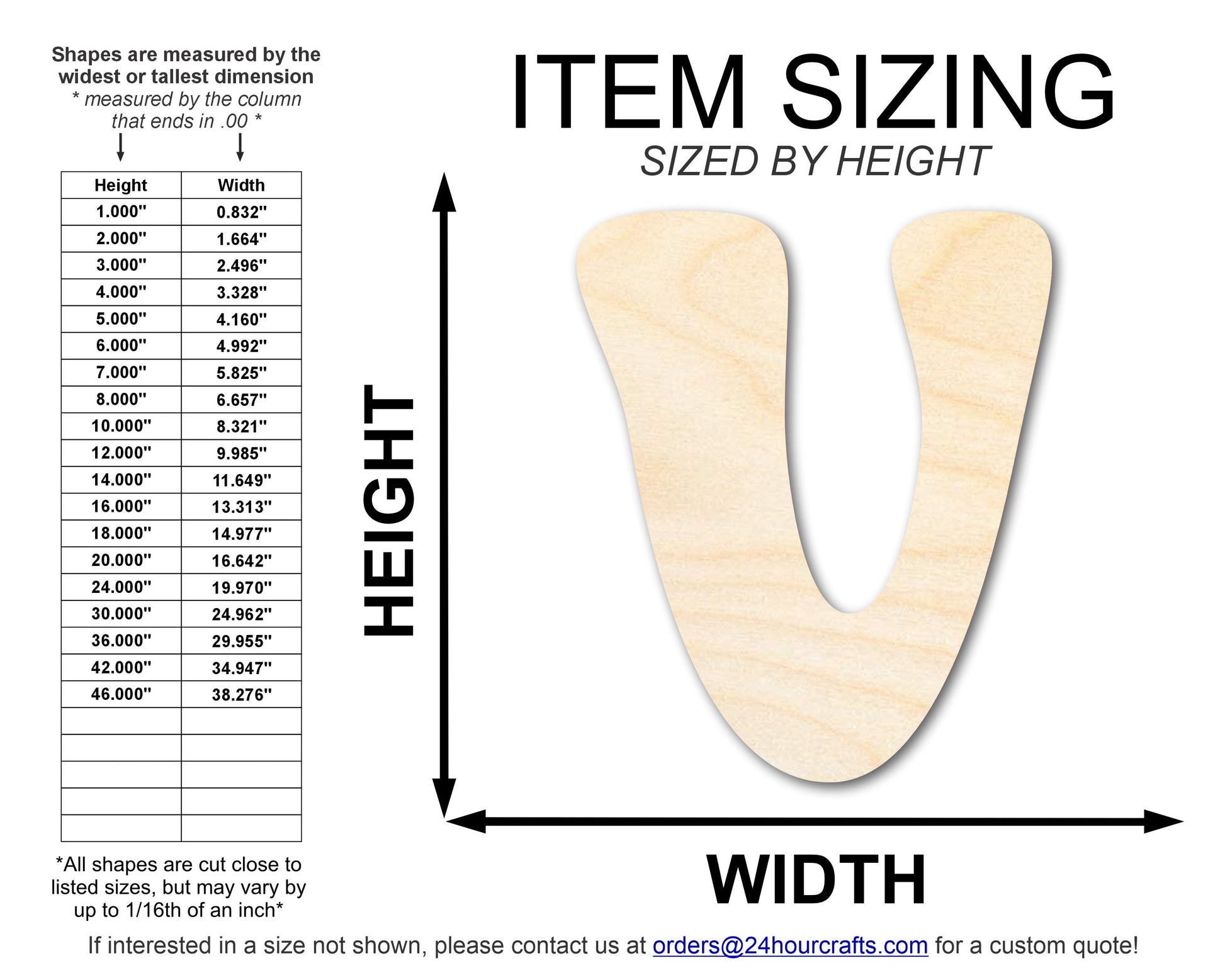 Unfinished Wood Groovy V Font Shape | DIY Craft Cutout | up to 46" DIY