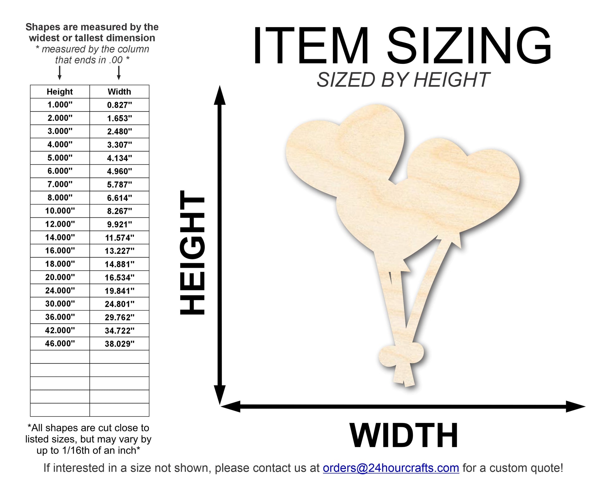 Unfinished Wood Heart Balloons Shape | DIY Craft Cutout | up to 46" DIY