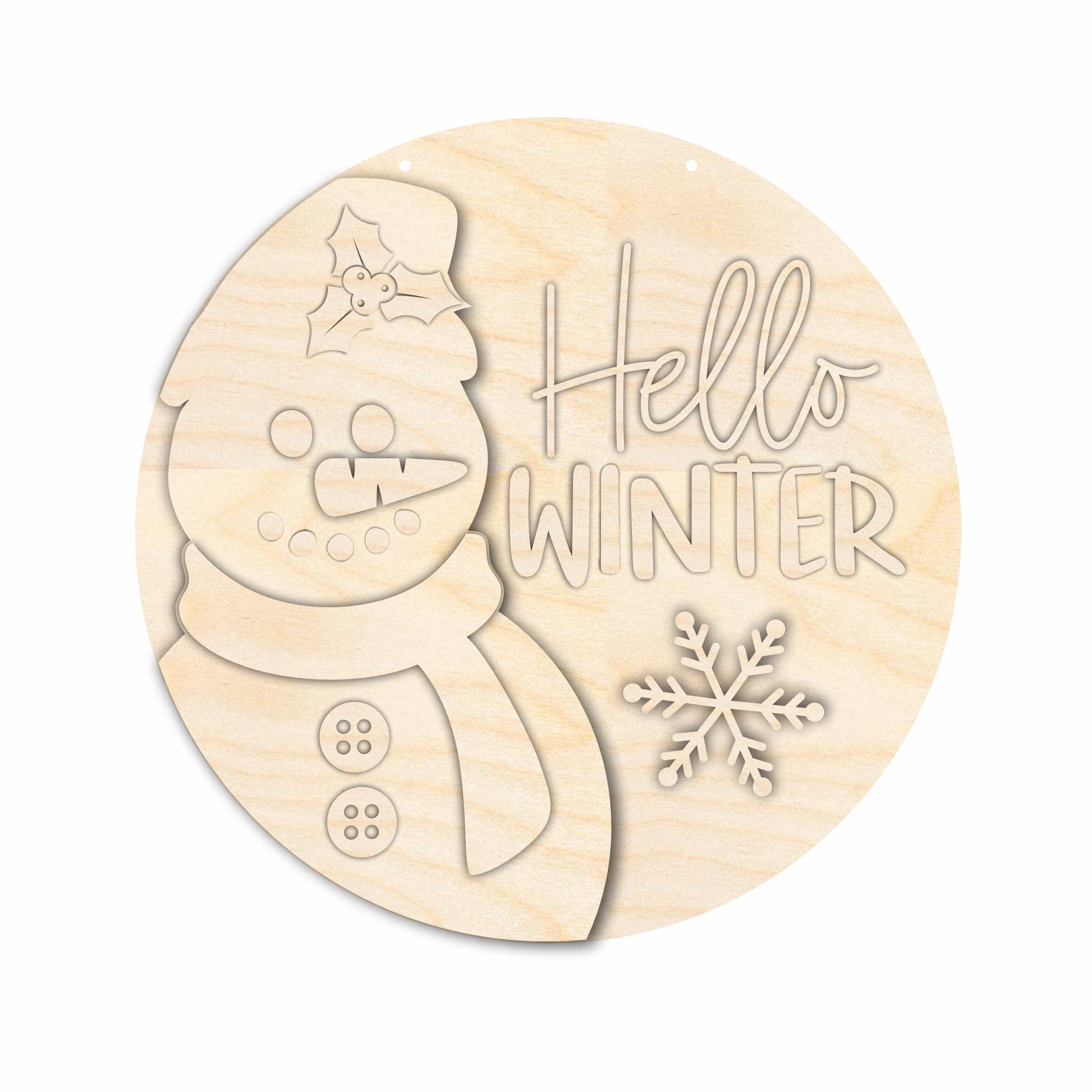 Unfinished Wood Hello Winter Snowman Door Sign Kit | Wood Craft Cutouts | 1/4" Thick |