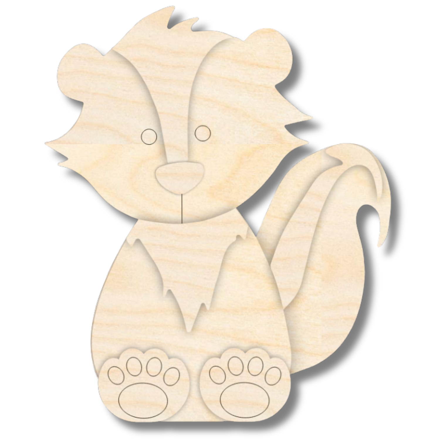 Unfinished Wood Layered and Etched Skunk Shelf Sitter | 6" Tall | 1/8" Wood | Wood Craft DIY