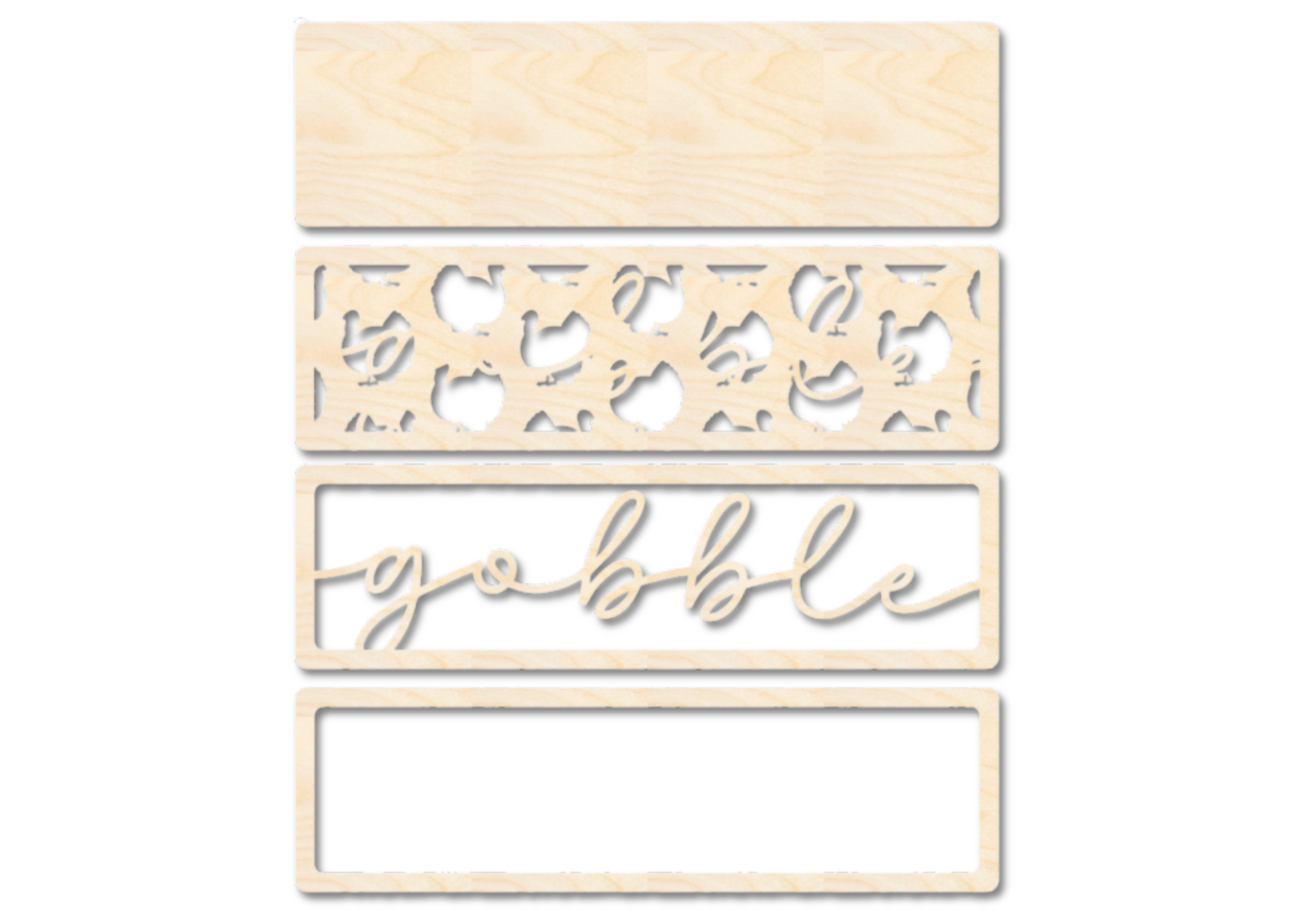 Our Layered Gobble Turkey Sign comes with beautifully detailed layers, featuring a turkey background and an elegant script “gobble” design. Each piece is precision cut and ready for you to paint, stain, or decorate however you like.
