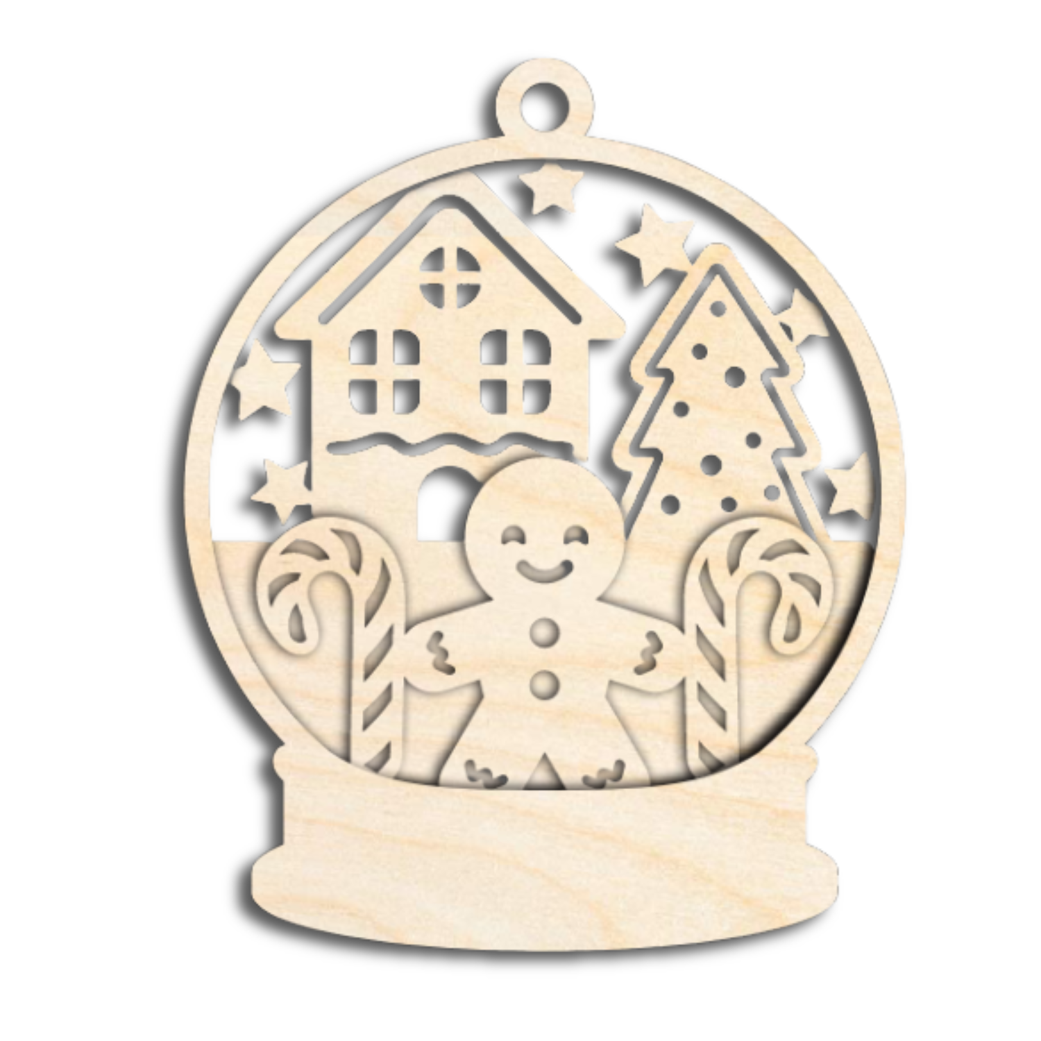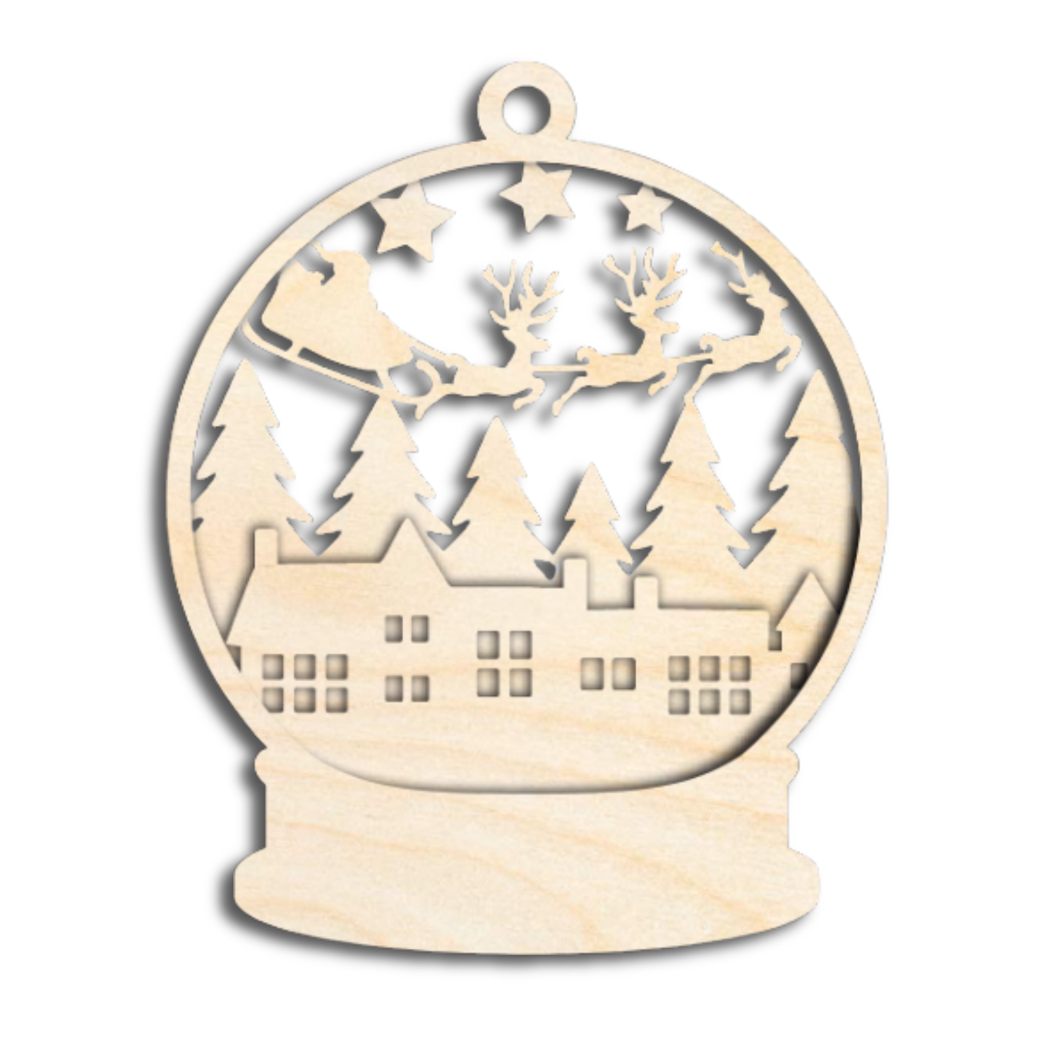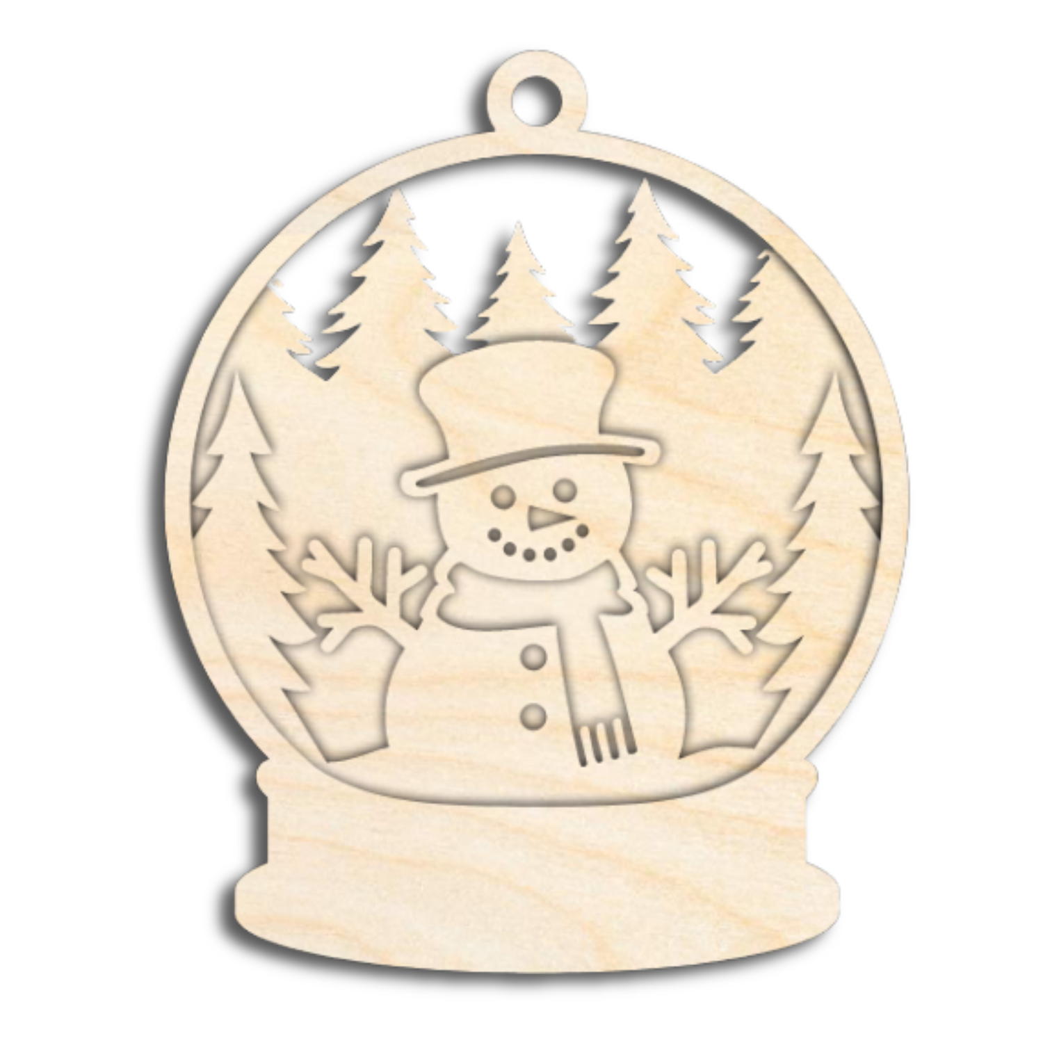 Unfinished Wood Layered Snow Globe Christmas Ornaments | 3 Piece | 5" Tall | 1/8" Wood | Wood Craft DIY