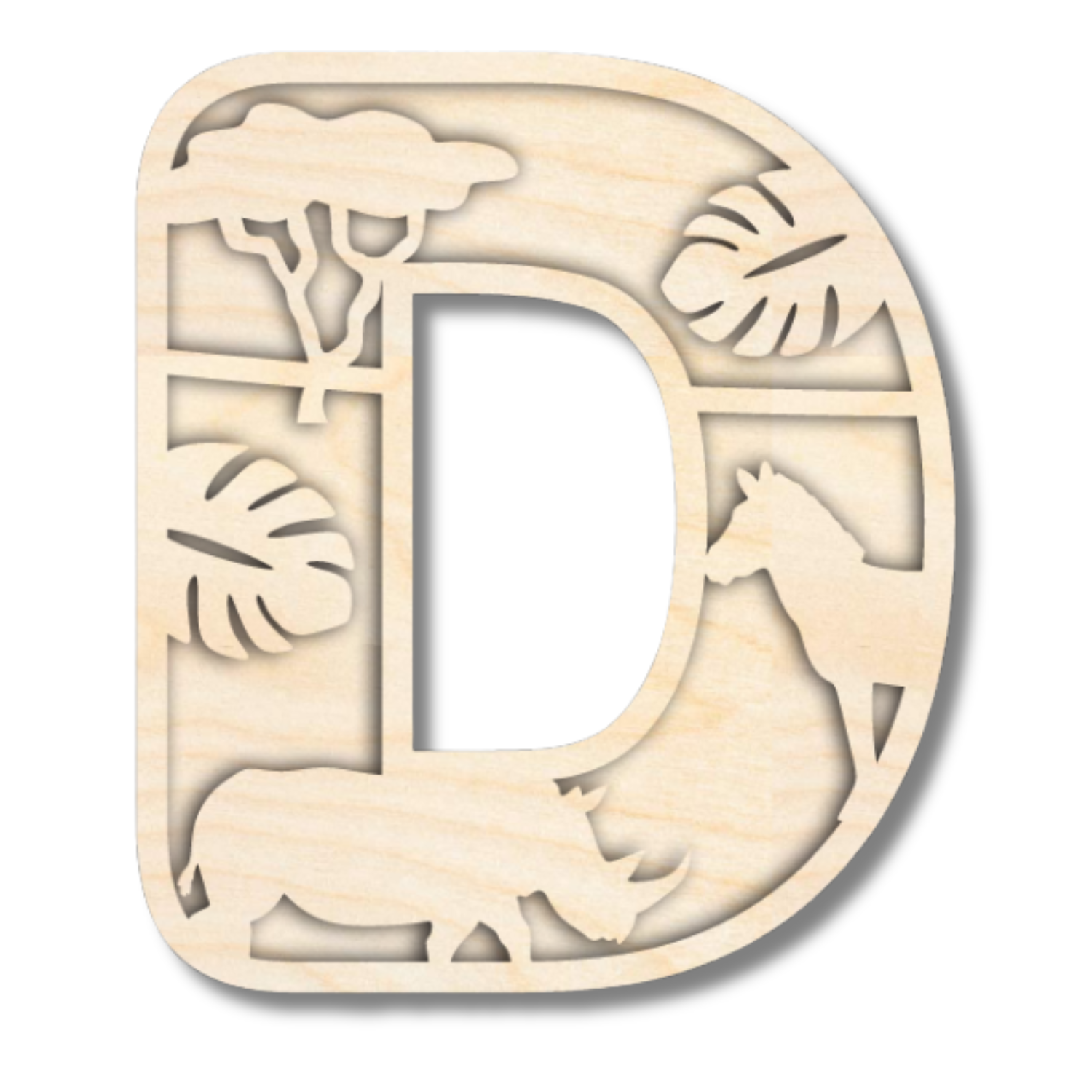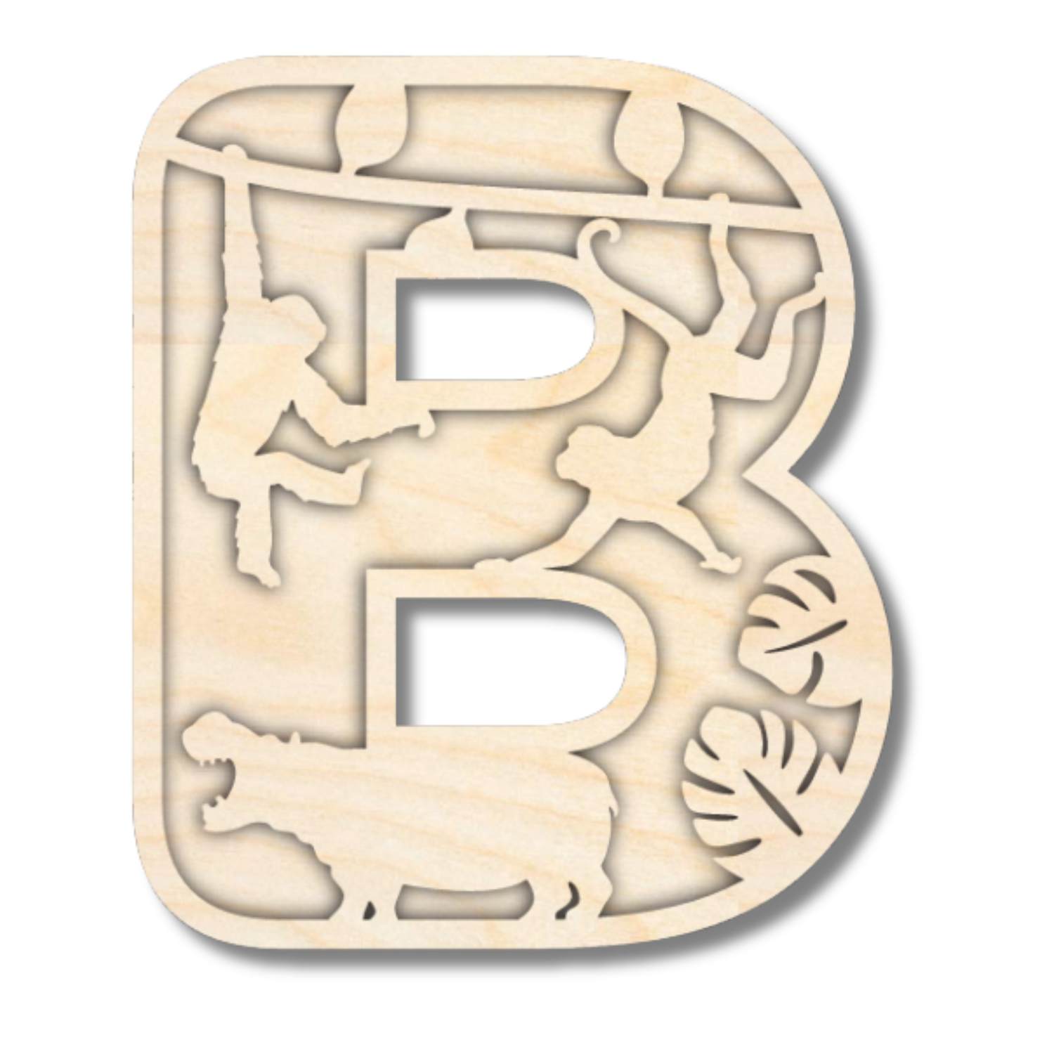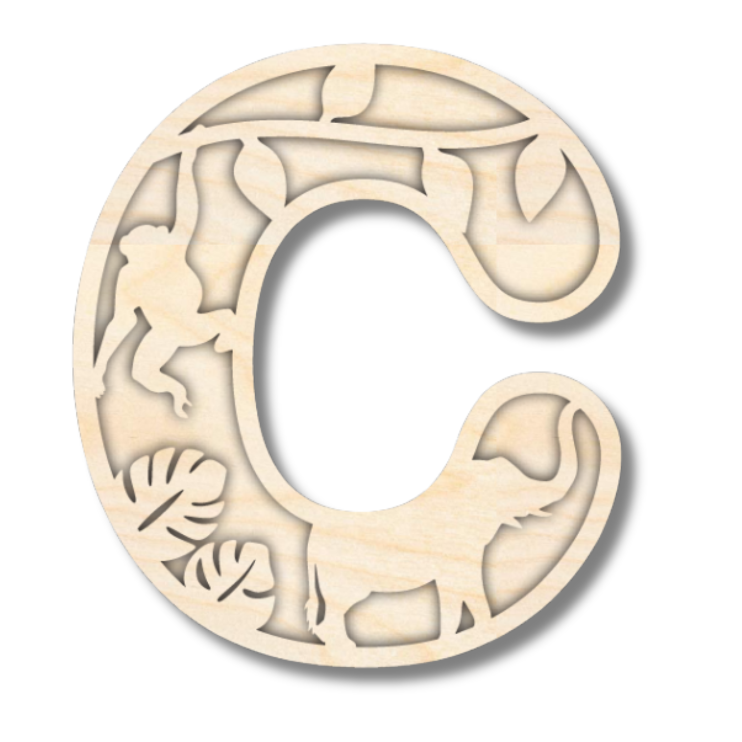 Unfinished Wood Layered Themed Letters | Jungle Animals | A-Z | 2 Piece | up to 24"