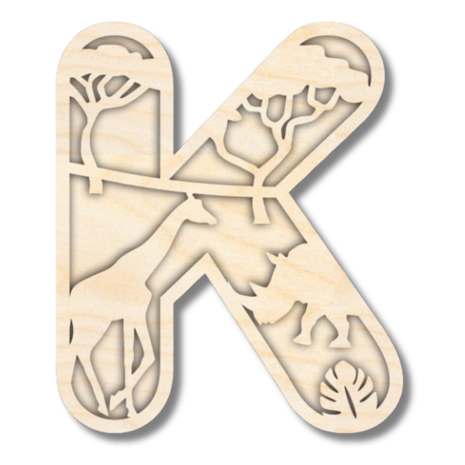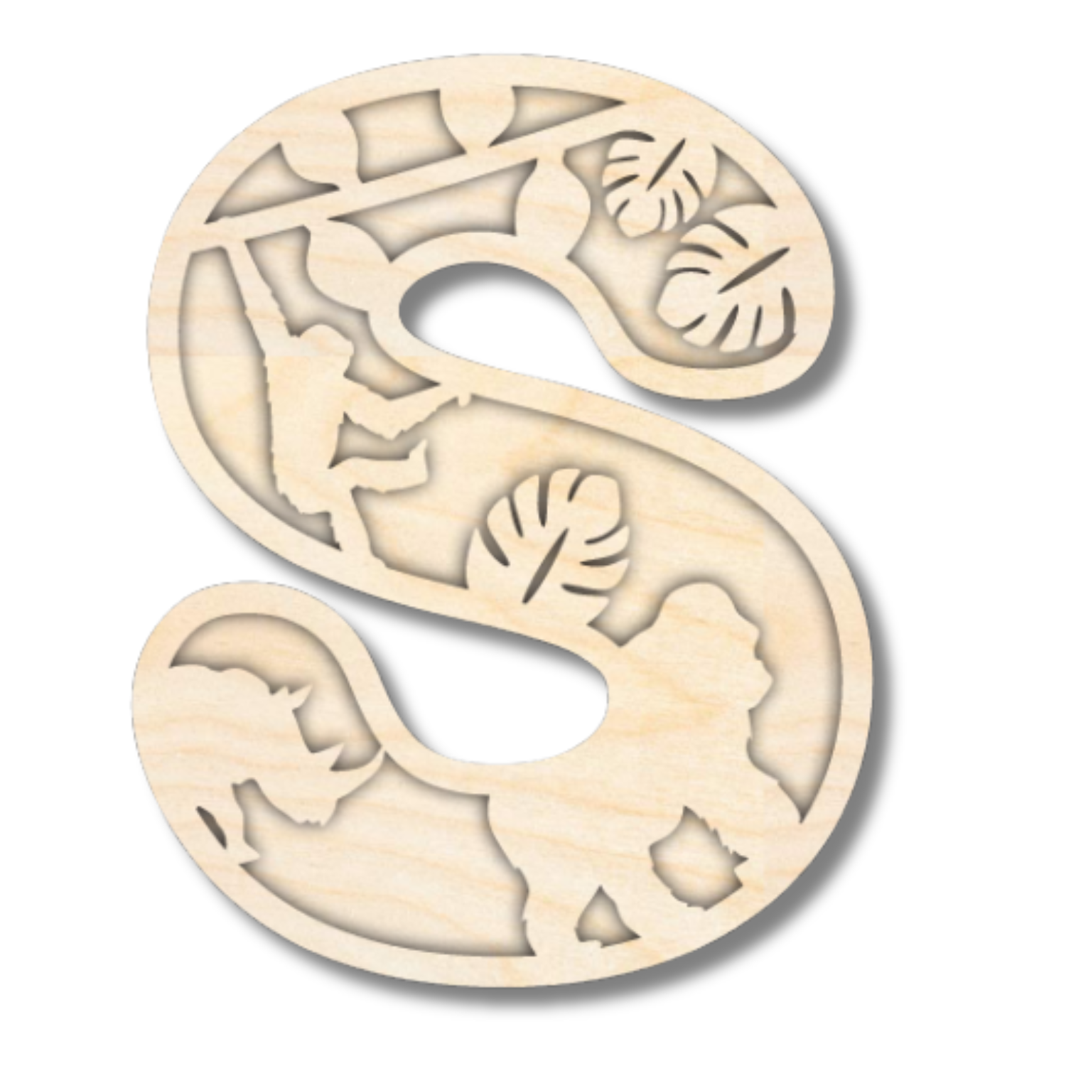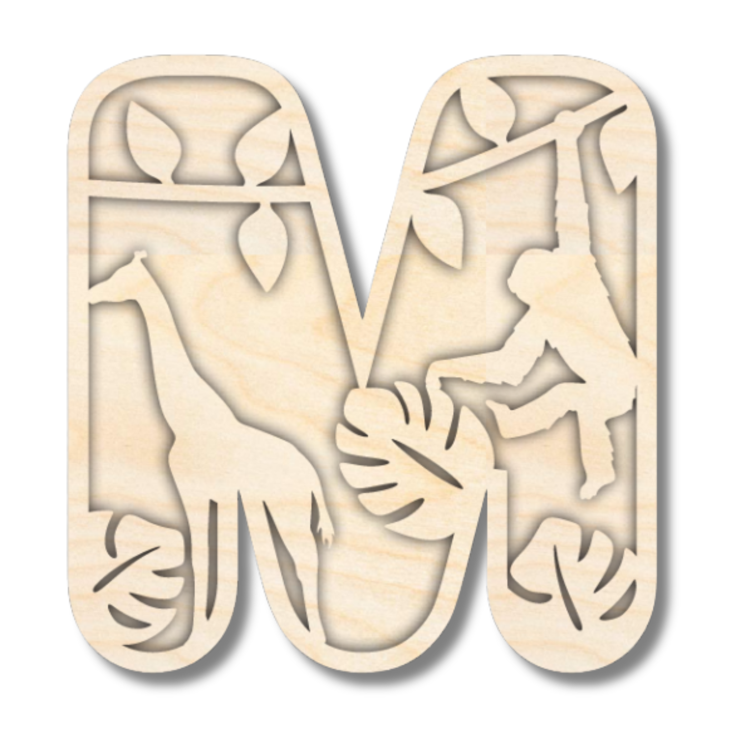 Unfinished Wood Layered Themed Letters | Jungle Animals | A-Z | 2 Piece | up to 24"