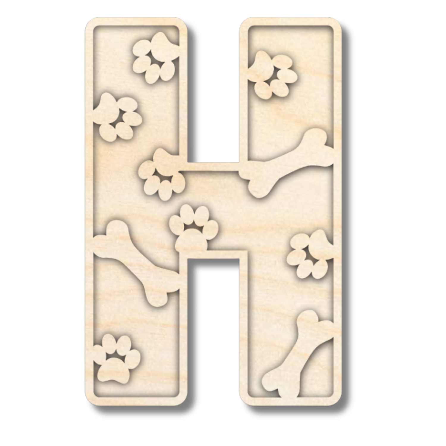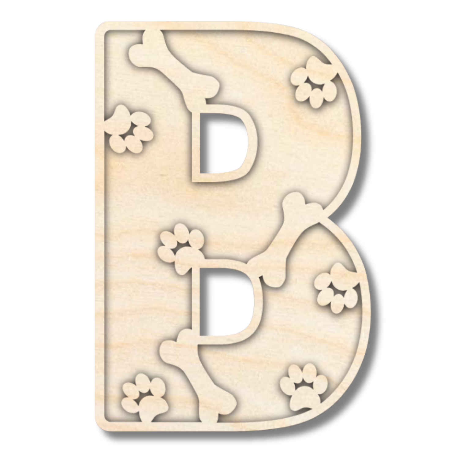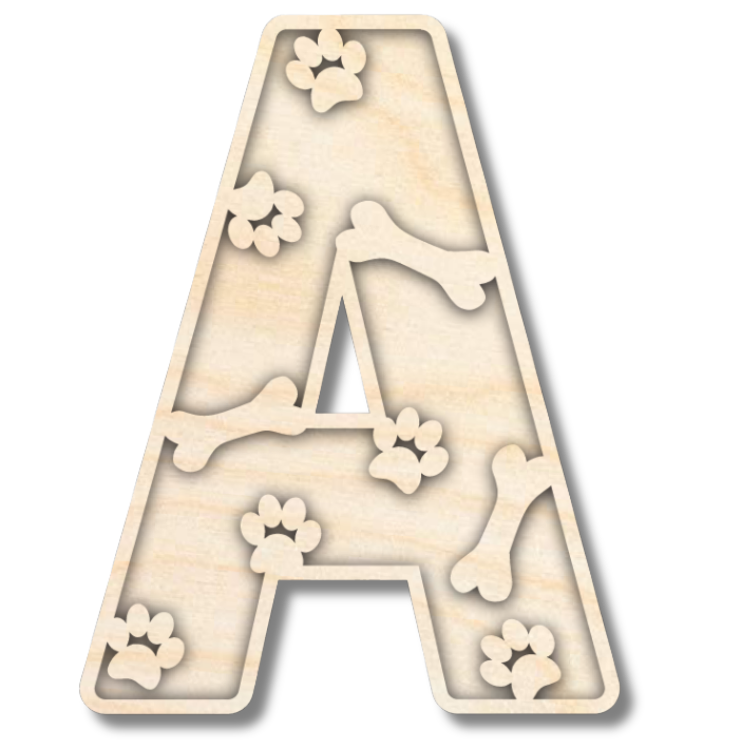 Unfinished Wood Layered Themed Letters | Paw Print | A-Z | 2 Piece | up to 24"