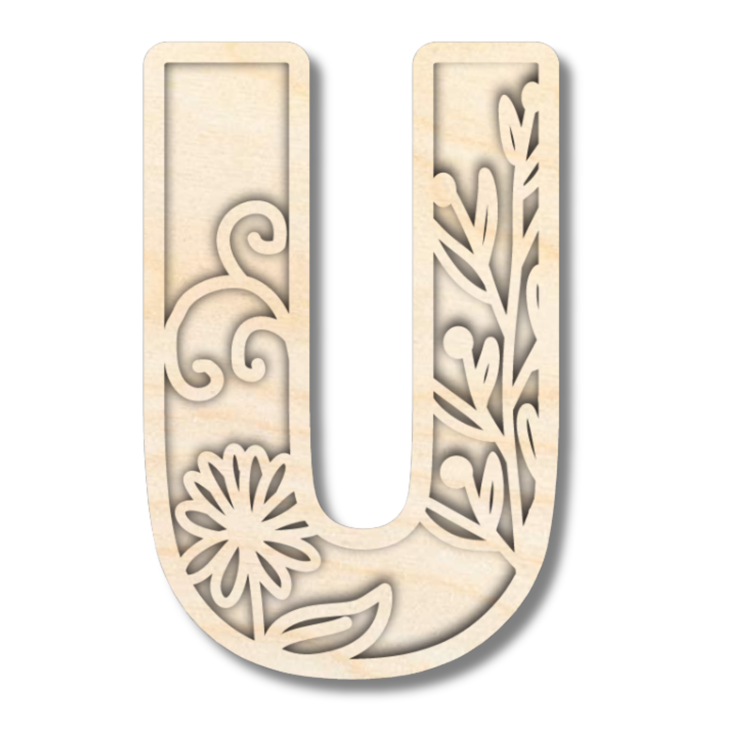 Unfinished Wood Layered Themed Letters | Wild Flowers | A-Z | 2 Piece | up to 24"